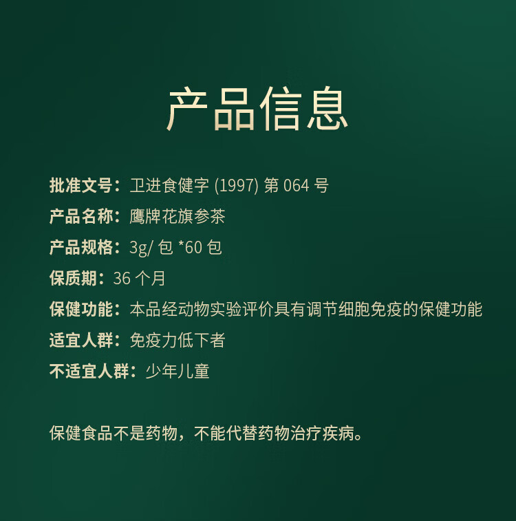 鹰牌花旗参颗粒礼盒装(3g/包*60包)