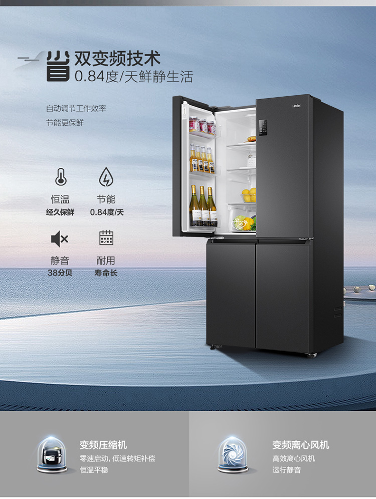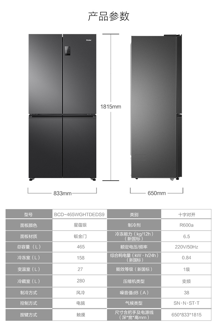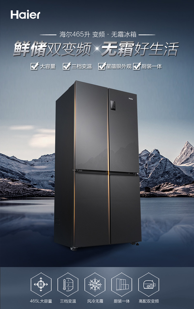 【下单前咨询地址库存】海尔(Haier)465升十字对开门嵌入冰箱 一级高配双变频 黑金净化 三档变温 BCD-465WGHTDEDS9