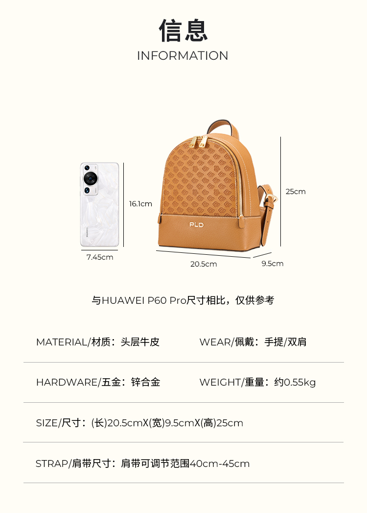 保兰德PLD东方雅奢45度老花经典系列大双肩背包通勤必备女包