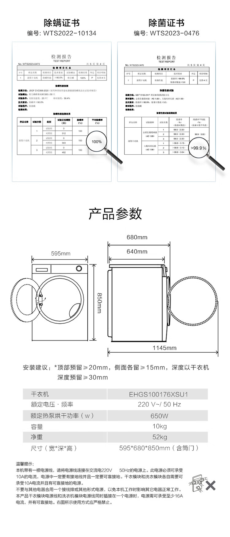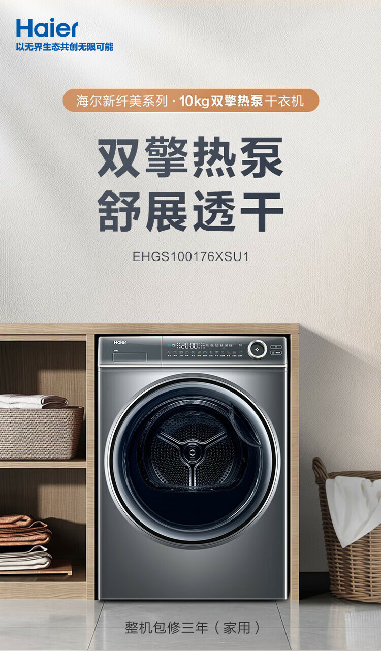 海尔(Haier)云溪176XS烘干机家用 10公斤双擎热泵干衣机 一件智烘 羊毛烘 空净过滤 EHGS100176XSU1