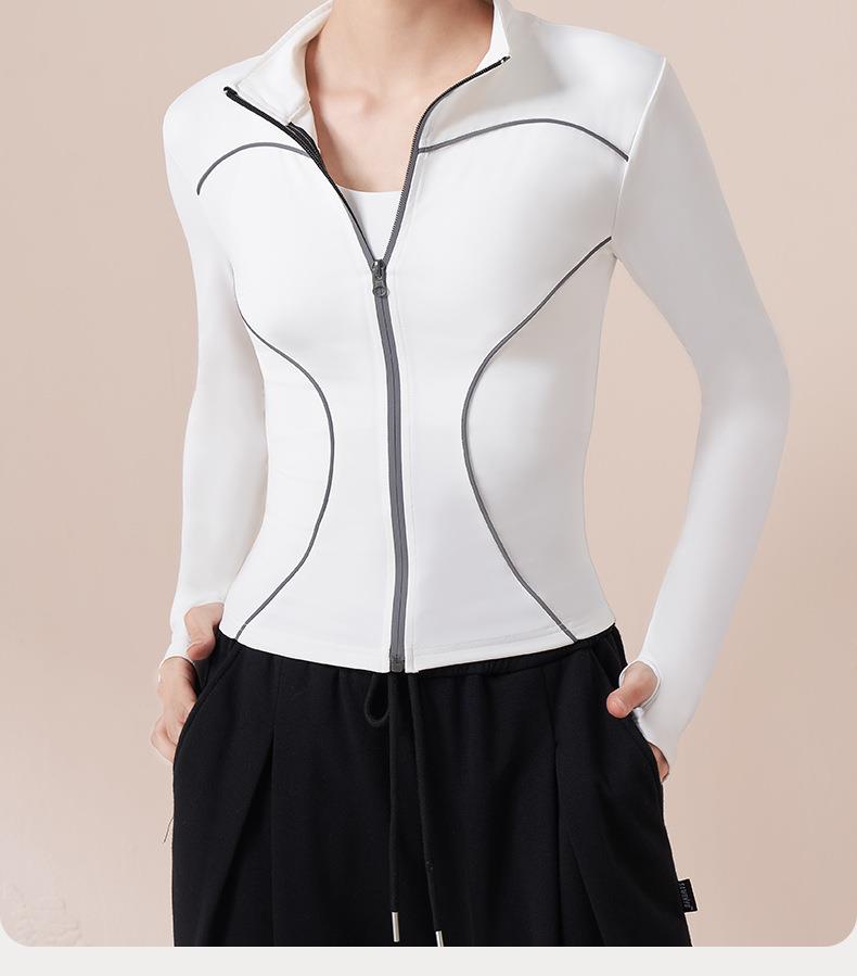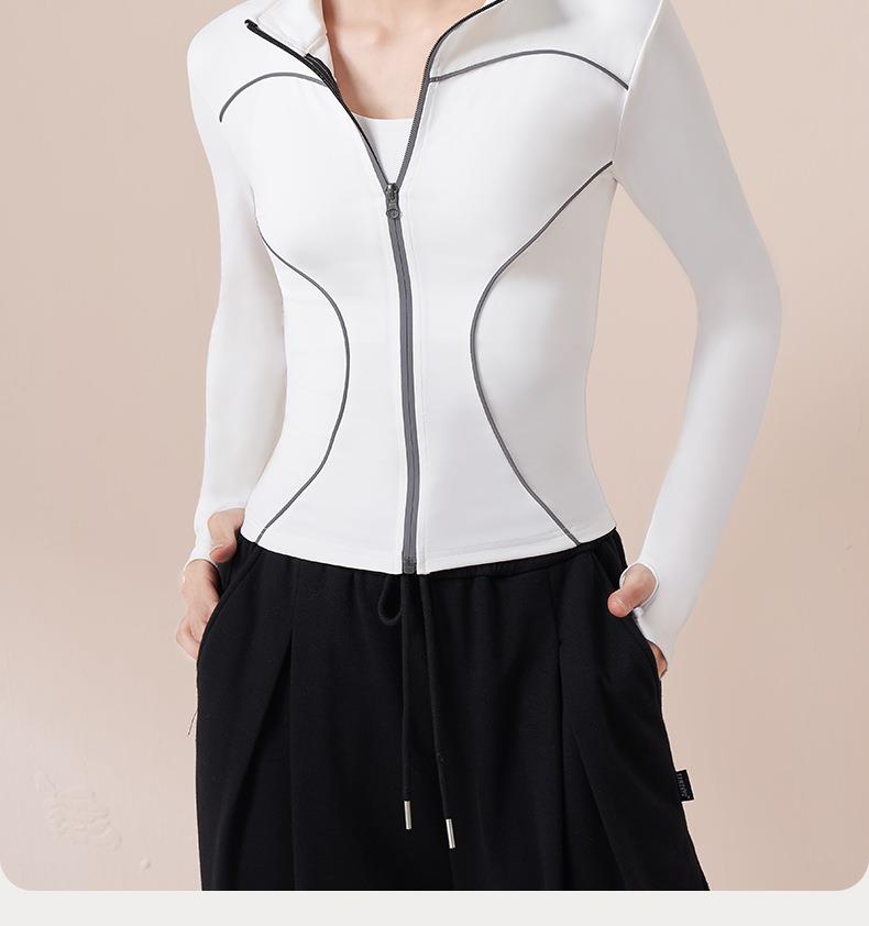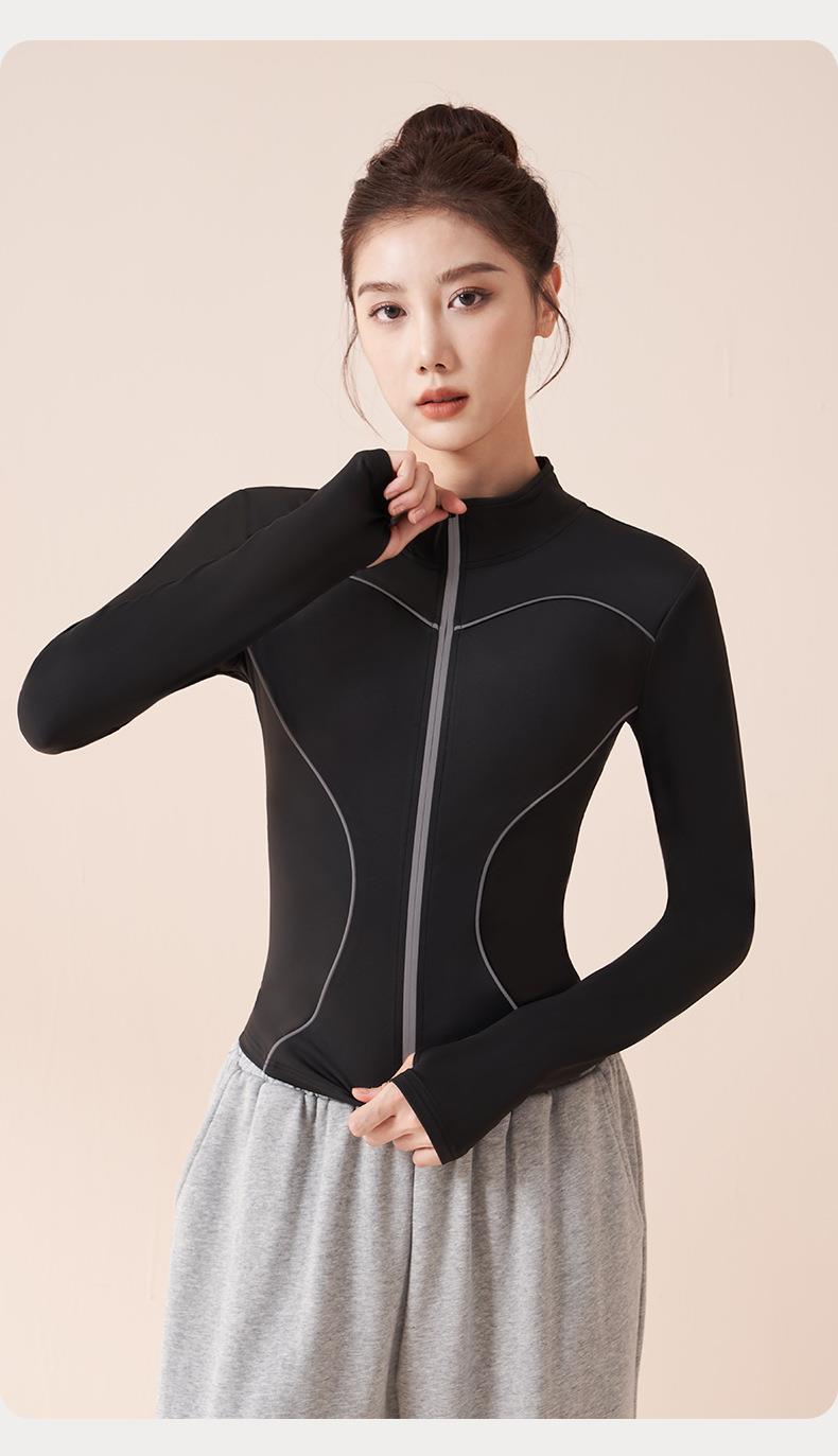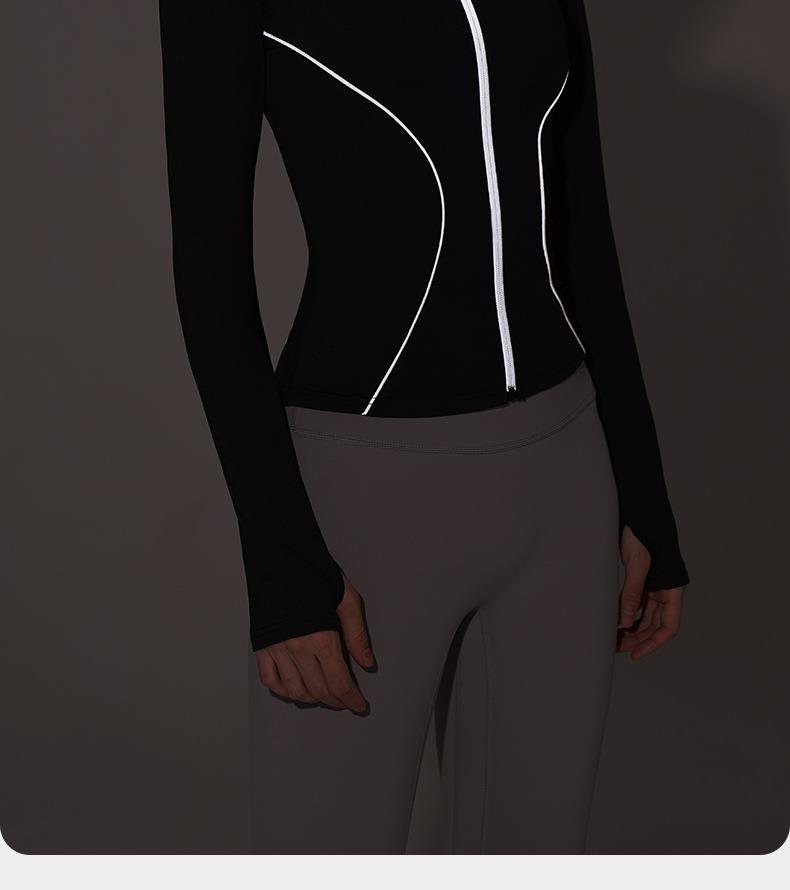 聚衣堂秋冬新款户外夜跑运动上衣加绒线感反光女长袖瑜伽外套