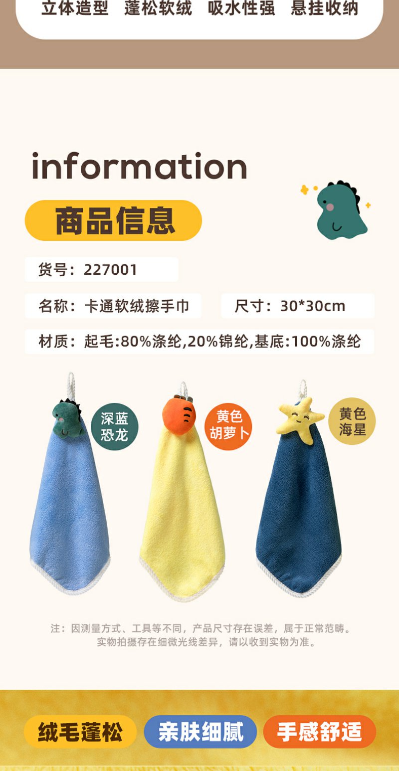 【茶花】卡通软绒擦手巾吸水性强