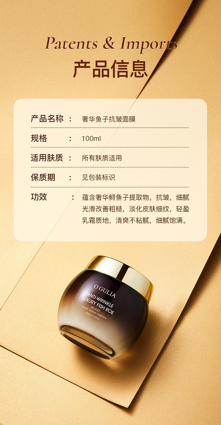 【保湿紧致滋润修护涂抹面膜】奢华鱼子酱抗皱面膜100ml
