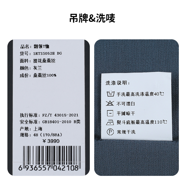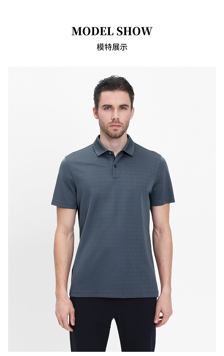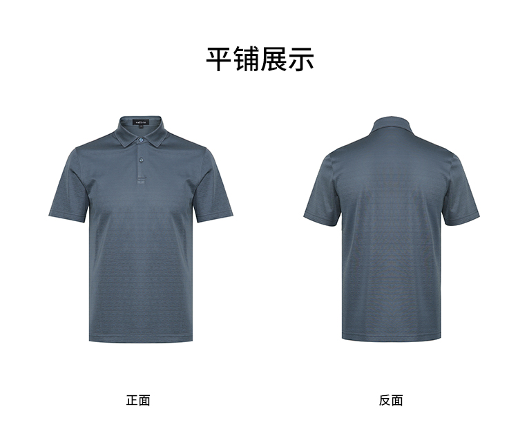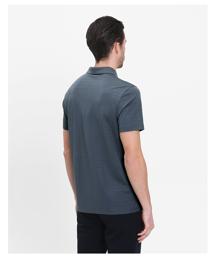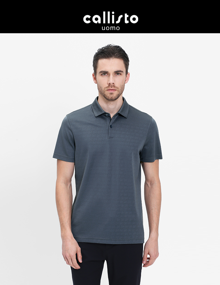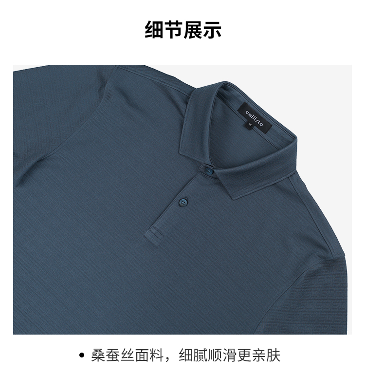 callisto灰蓝提花桑蚕丝翻领T恤 SRTSS052H