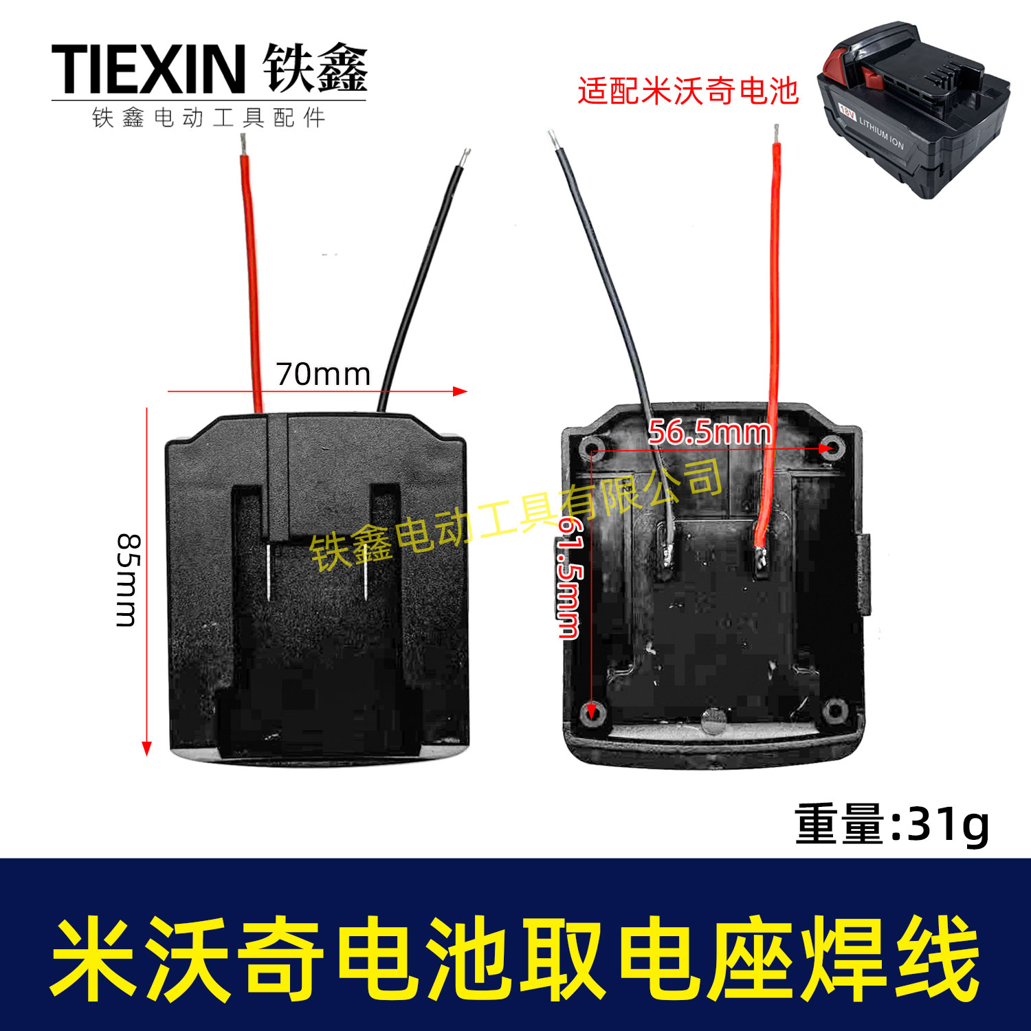 【货号07204】适配米沃奇电池取电器带线米沃奇21V电池取电座电池放电座锂电池改装配件