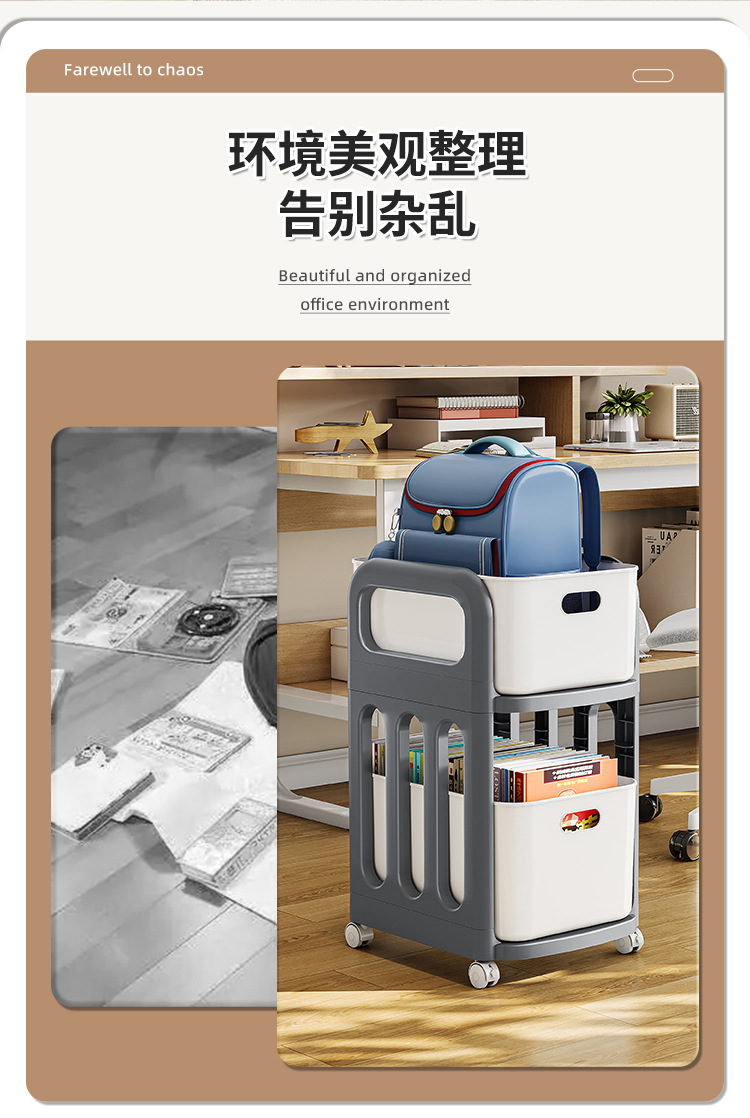【利用桌下空间 轻松收纳】桌下移动小推车 拓展桌下新空间 各种杂物 尽收囊中 桌边桌下都可用