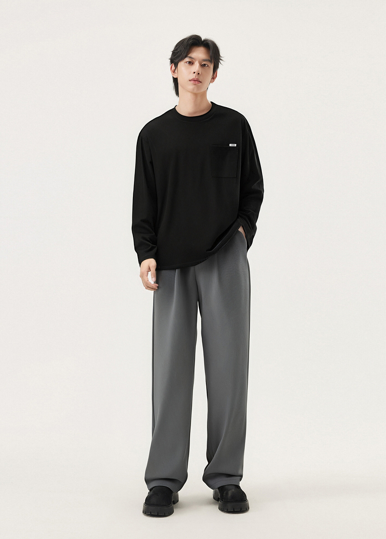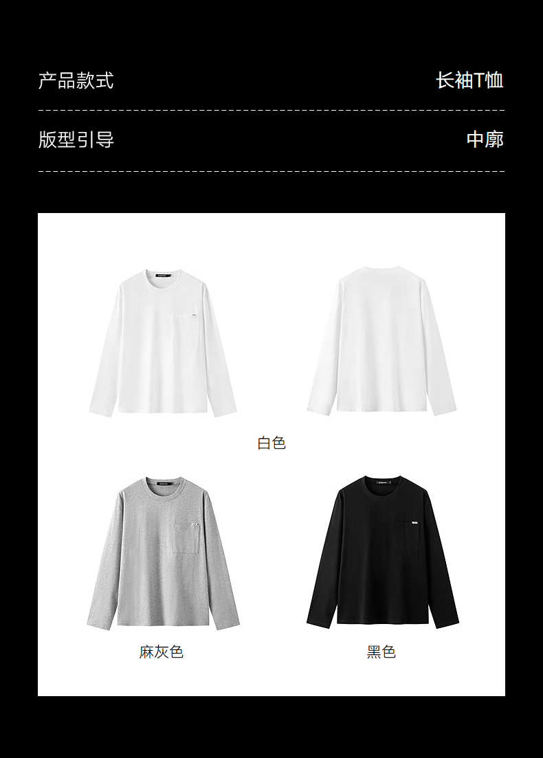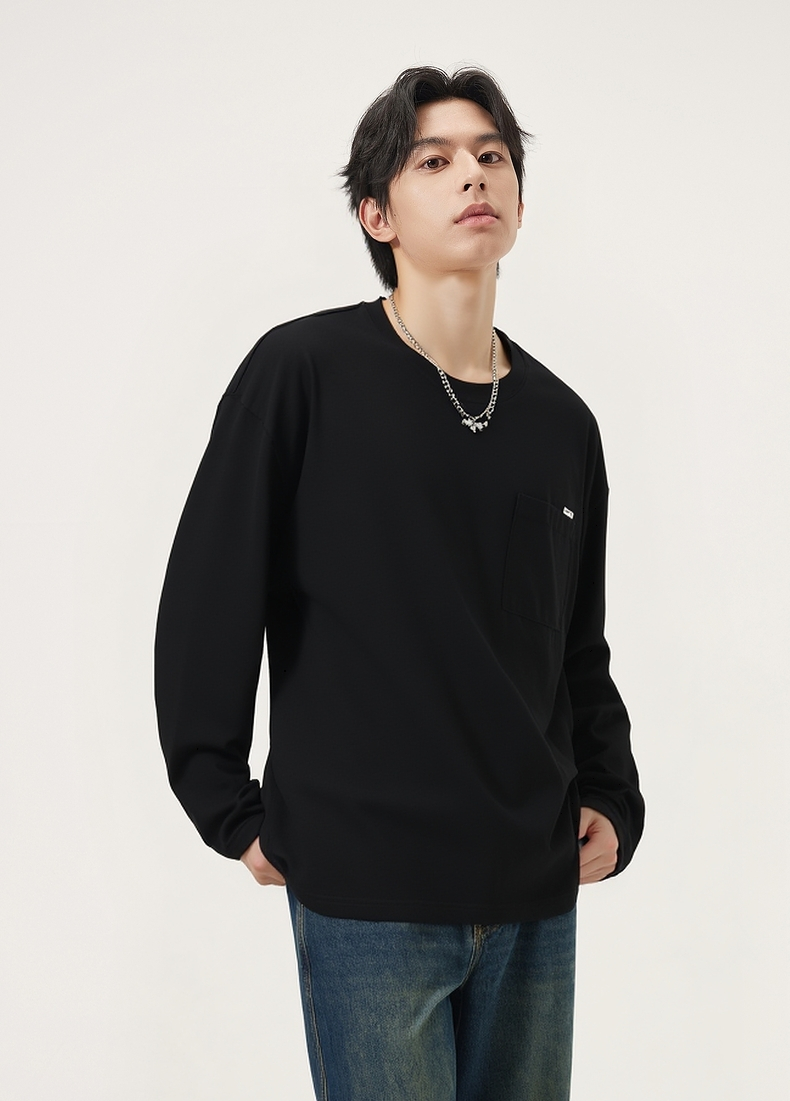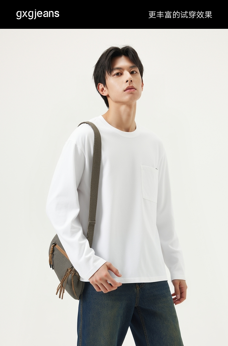 gxg.jeans男装 多色口袋设计纯棉宽松圆领长袖T恤男 25年秋热卖