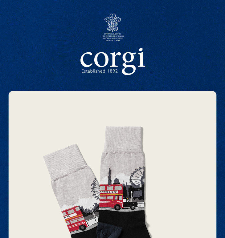 【直播间】CORGI柯基英国进口男士袜英国街景印花潮袜秋冬季中筒袜