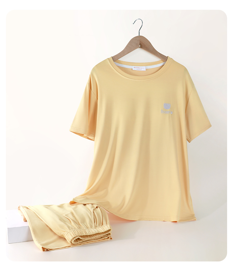 【商场同款】熳洁儿 免穿文胸短袖七分裤夏季女士家居服带杯垫舒适莫代尔简约可外穿24203260