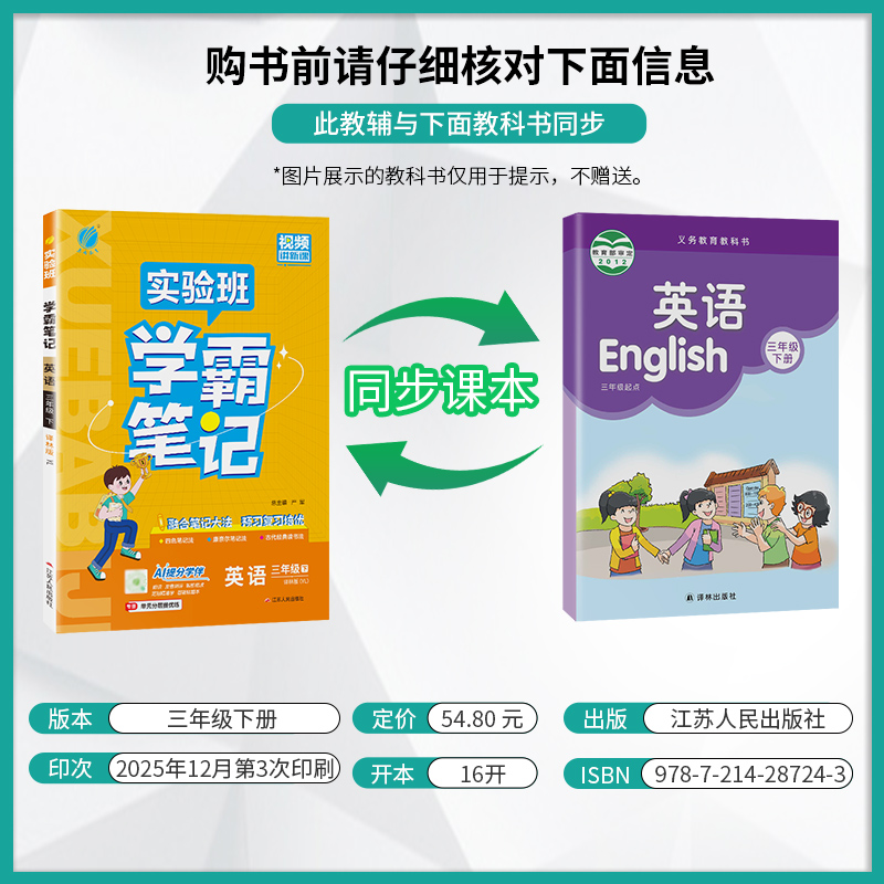 2026年春 小学英语【译林版】三年级下册 实验班学霸笔记 3年级
