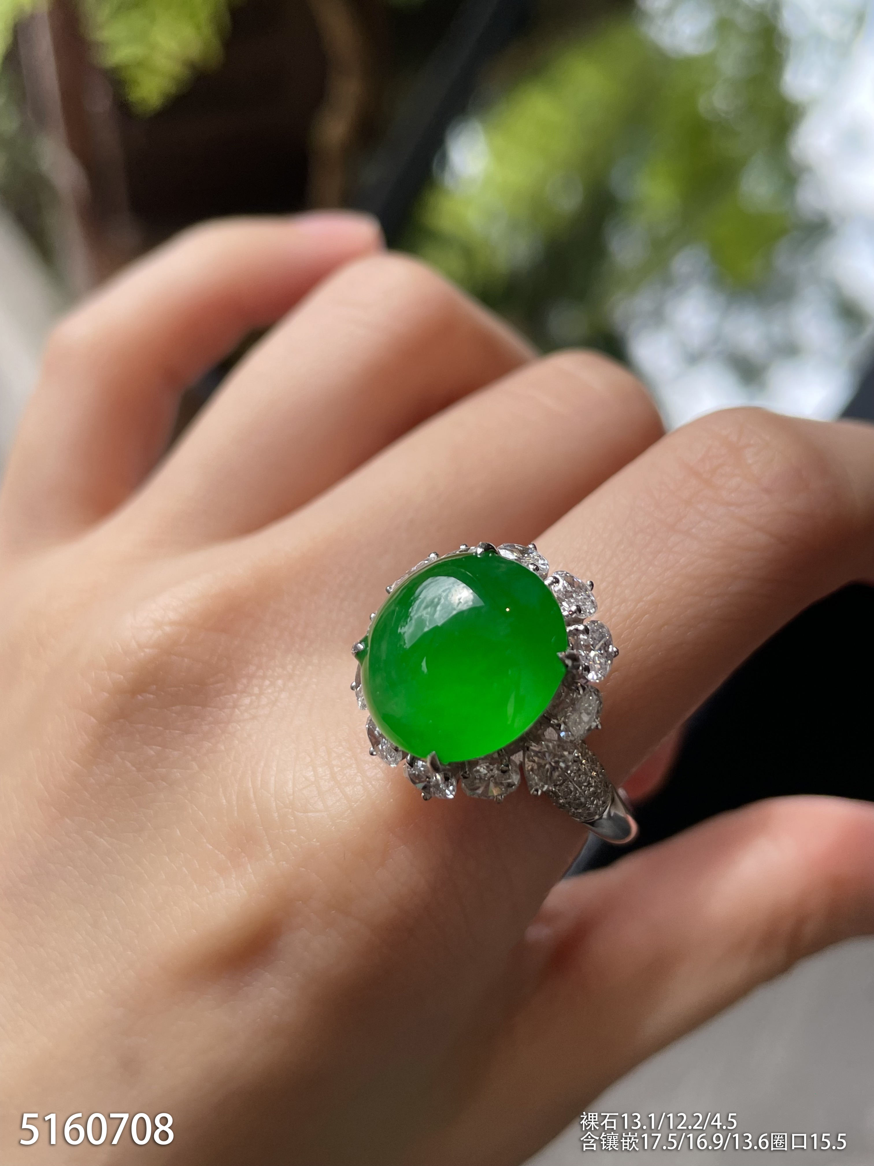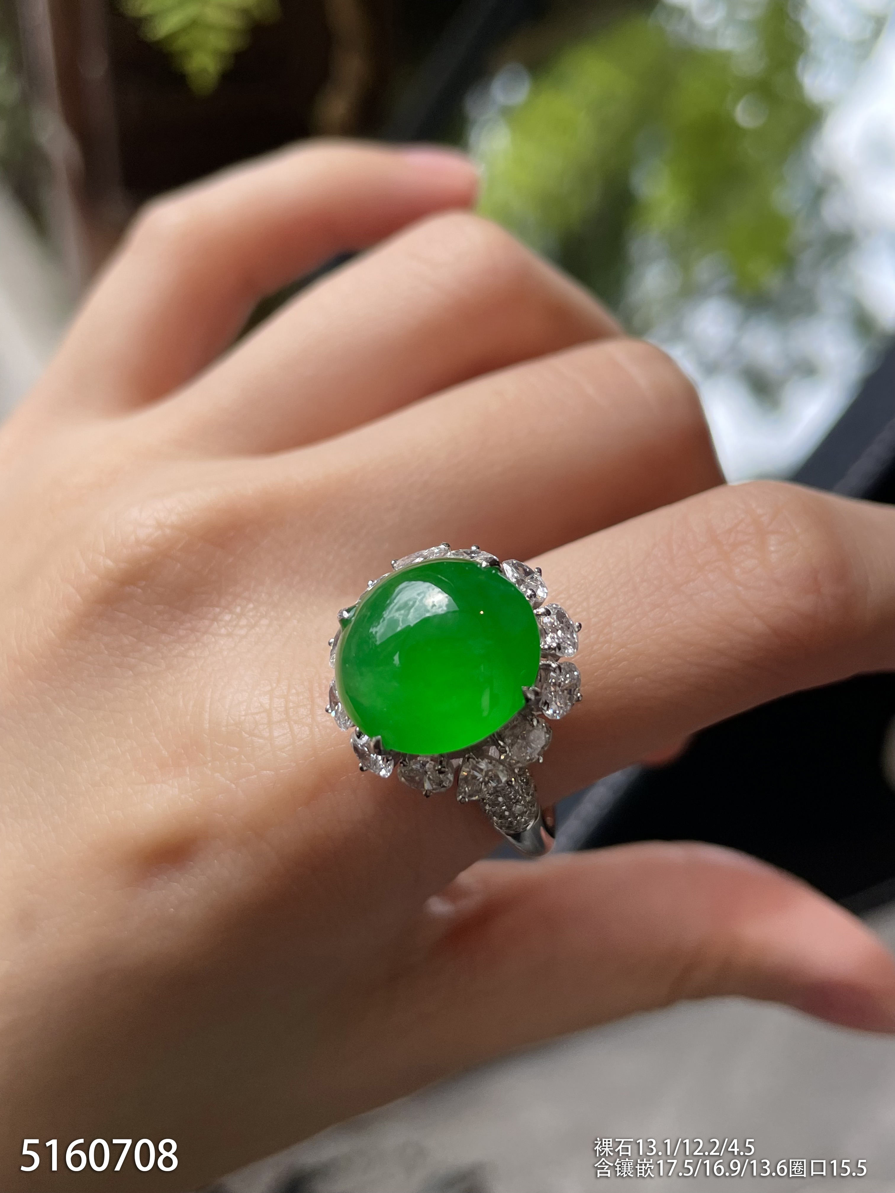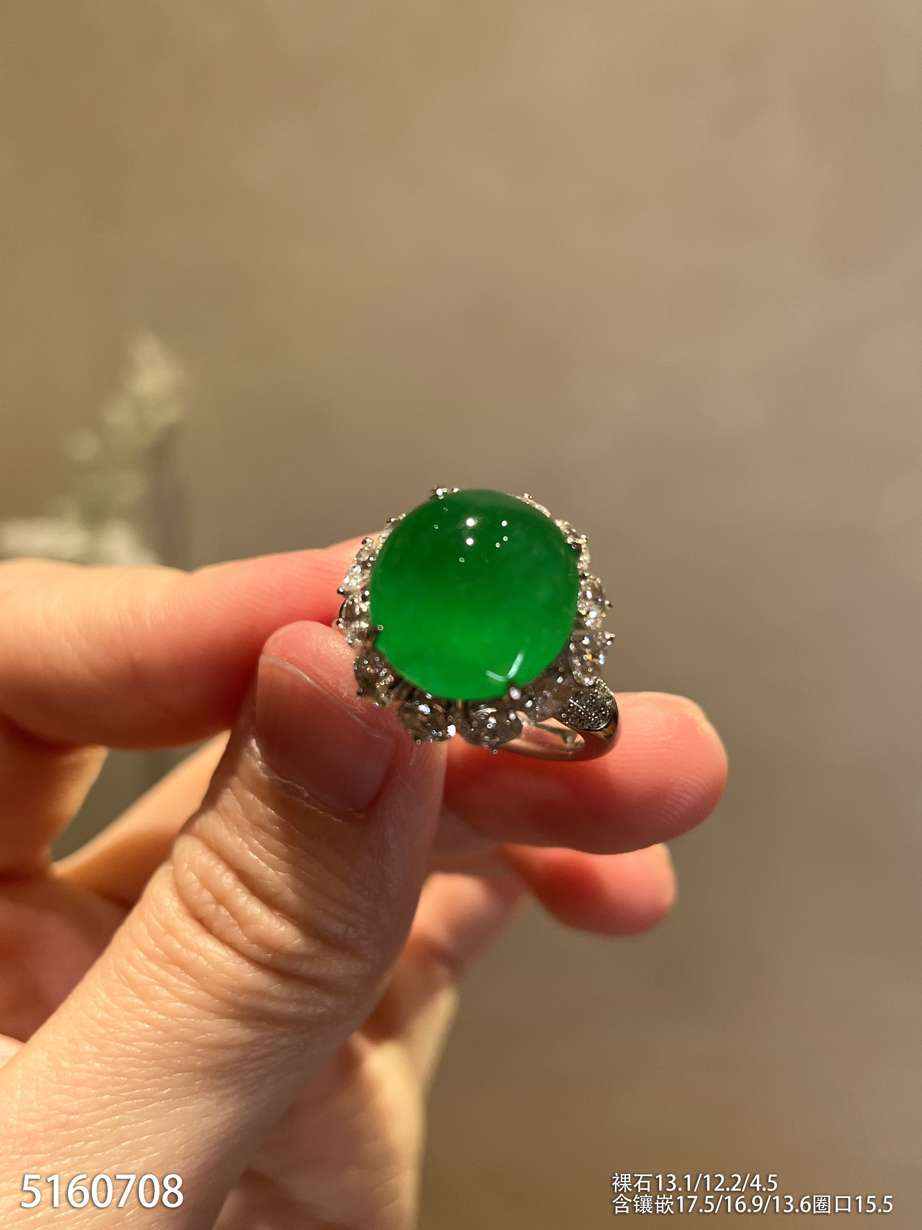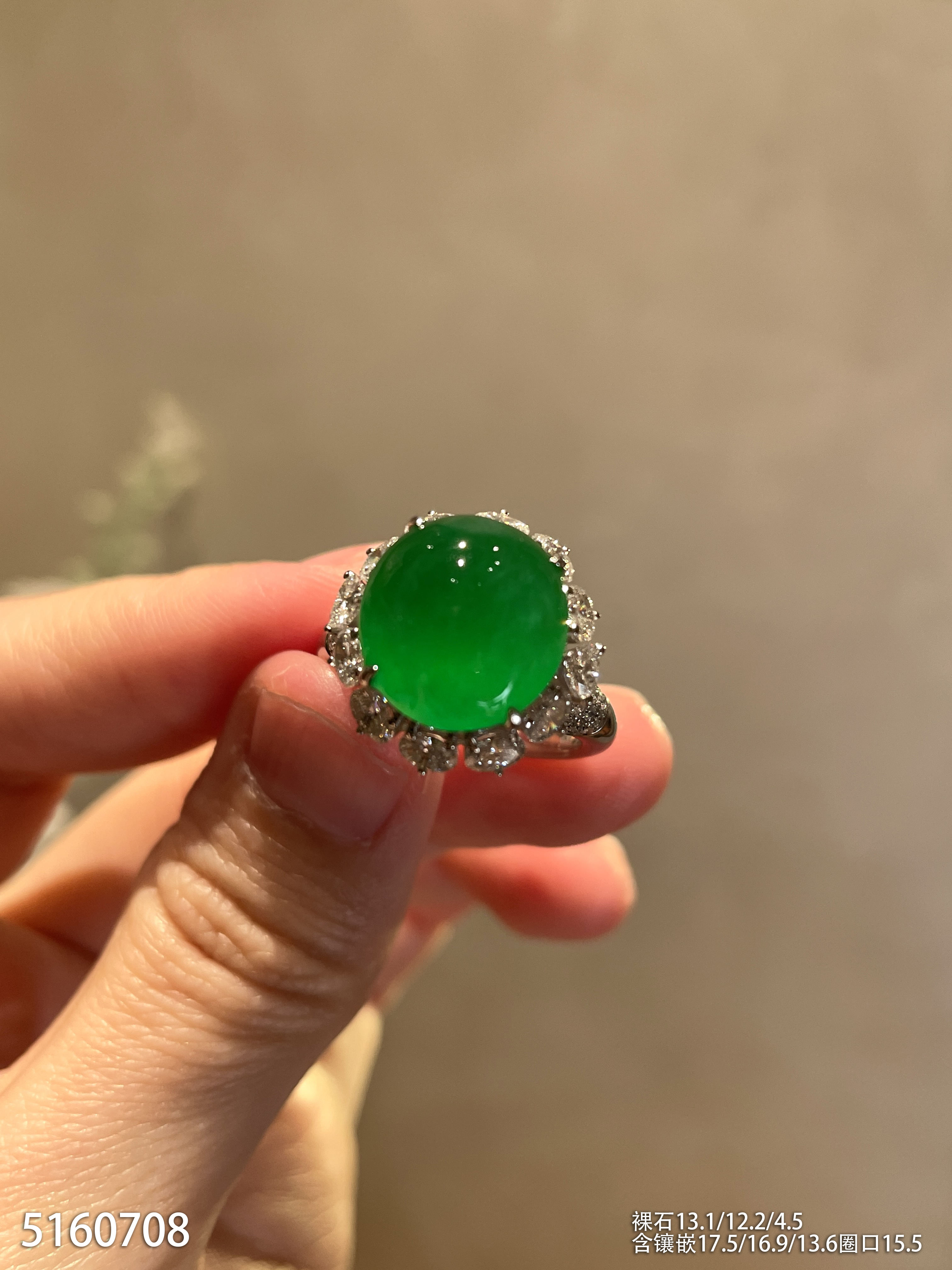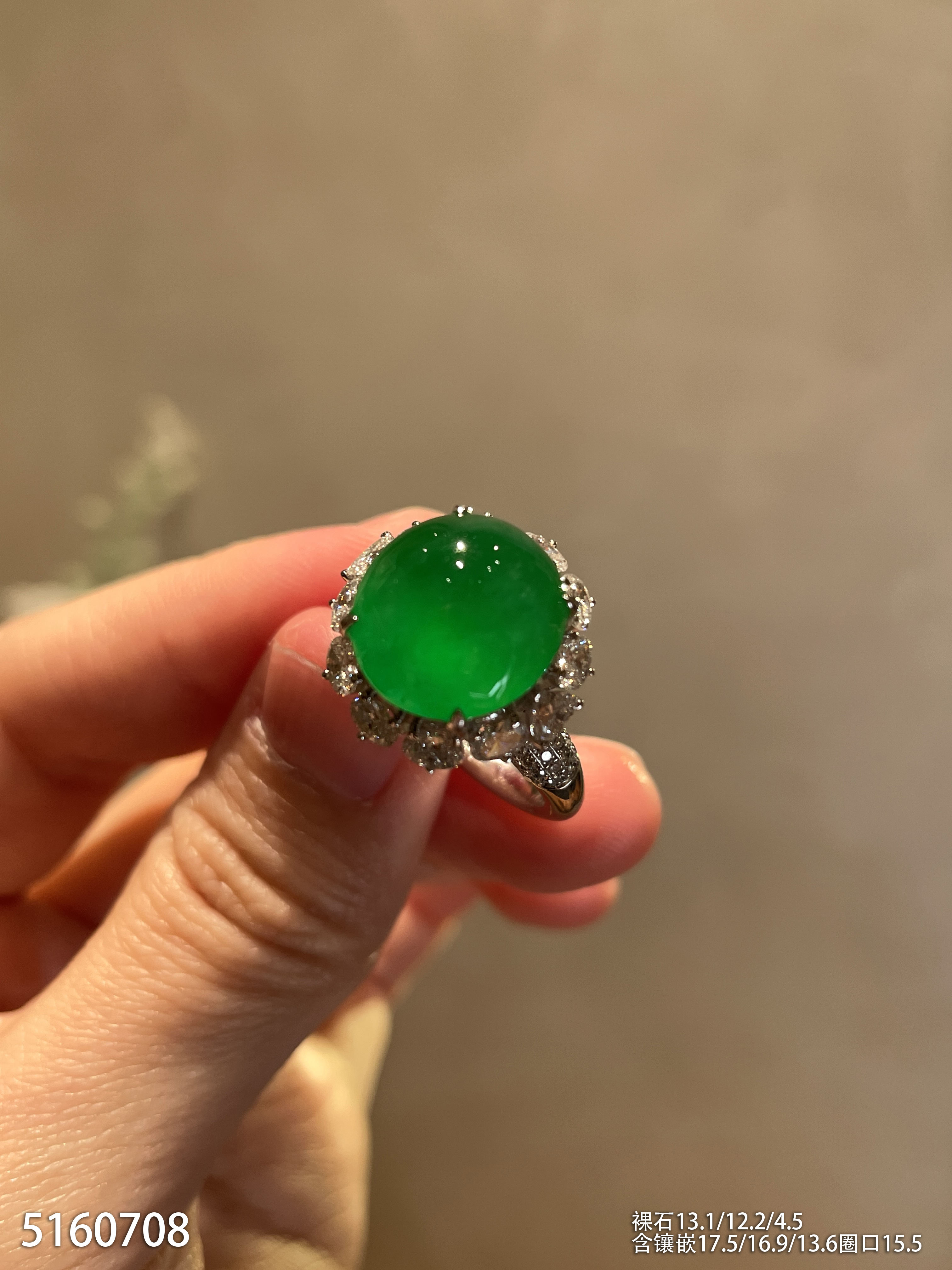 老坑艳绿蛋面戒指【5160708】具体价格微信咨询