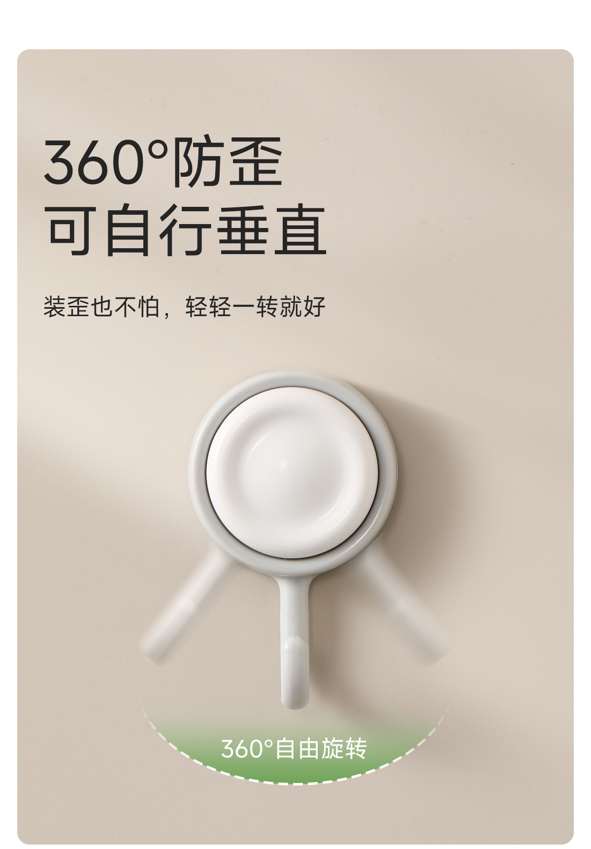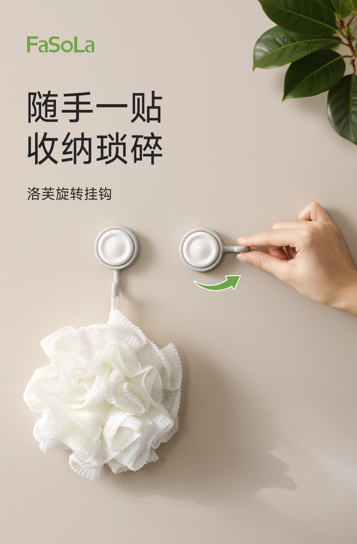 FaSoLa挂钩免打孔可旋转家用厨房浴室多功能壁挂式无痕洛芙旋转挂钩