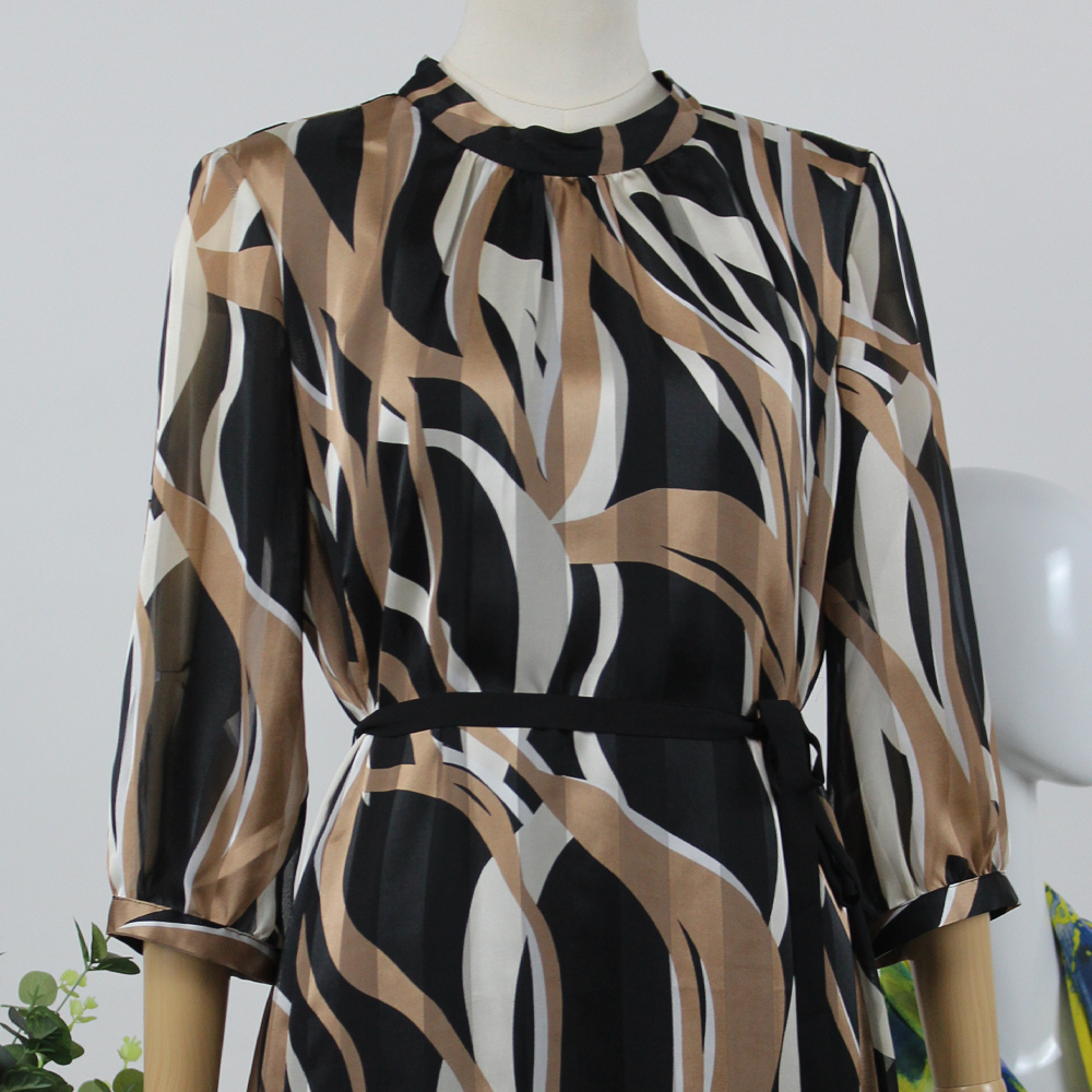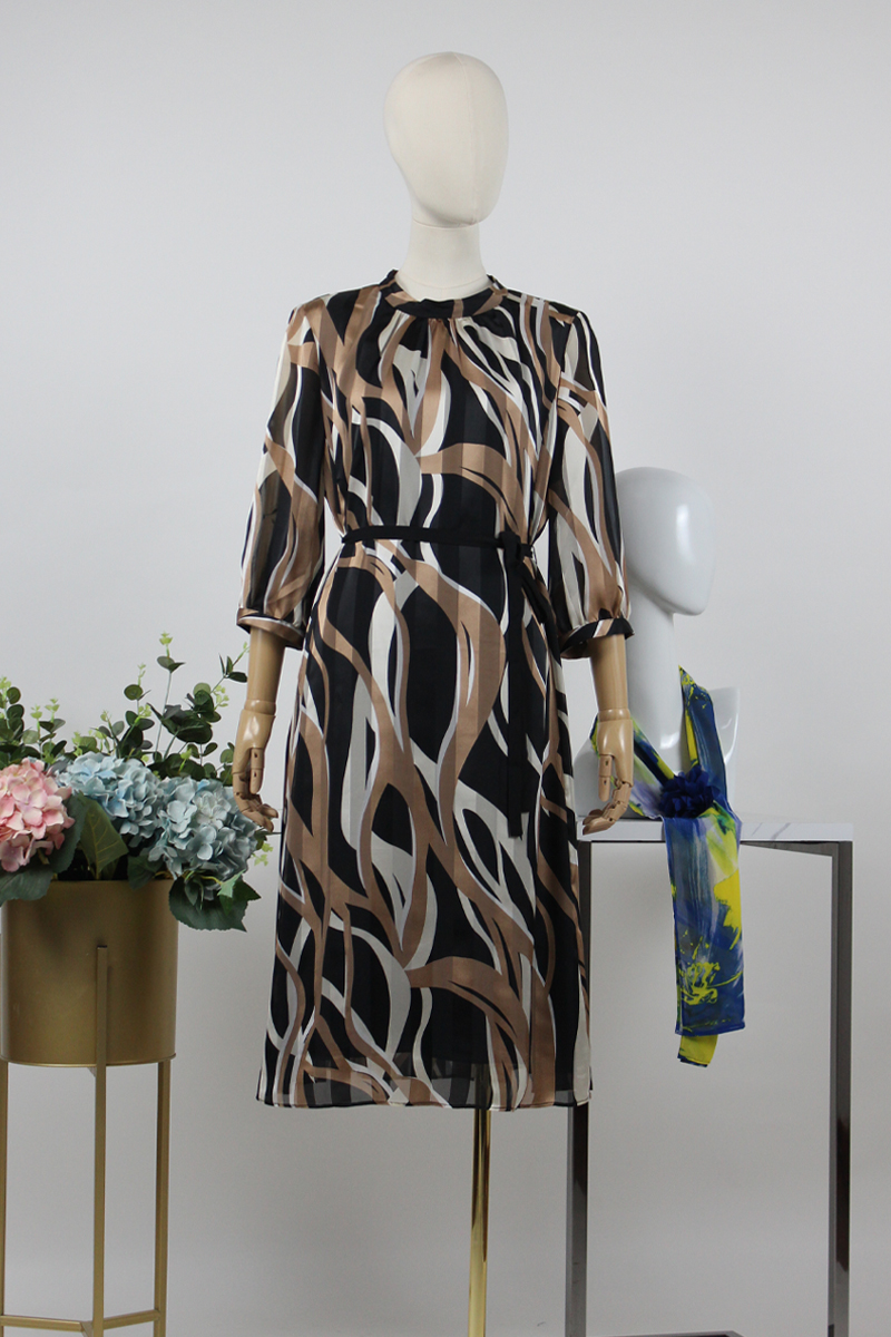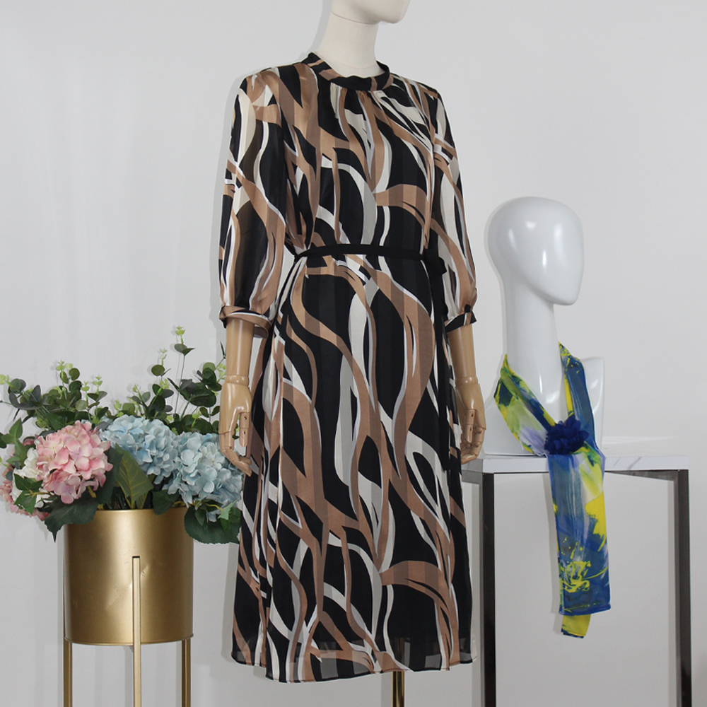 FOCALS福柯斯女装夏季新款雪纺印花半袖收腰显瘦连衣裙F2Y2X118MT