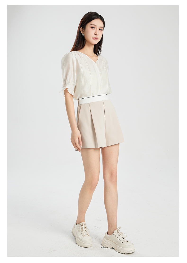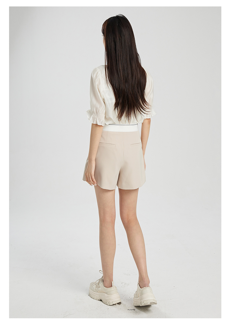 oldcolour夏季新款撞色拼接简约气质高腰宽松休闲短裤女Q220702A1