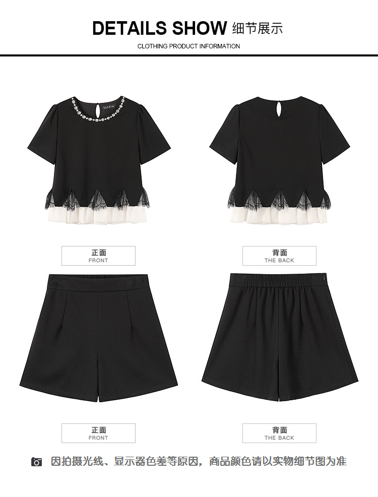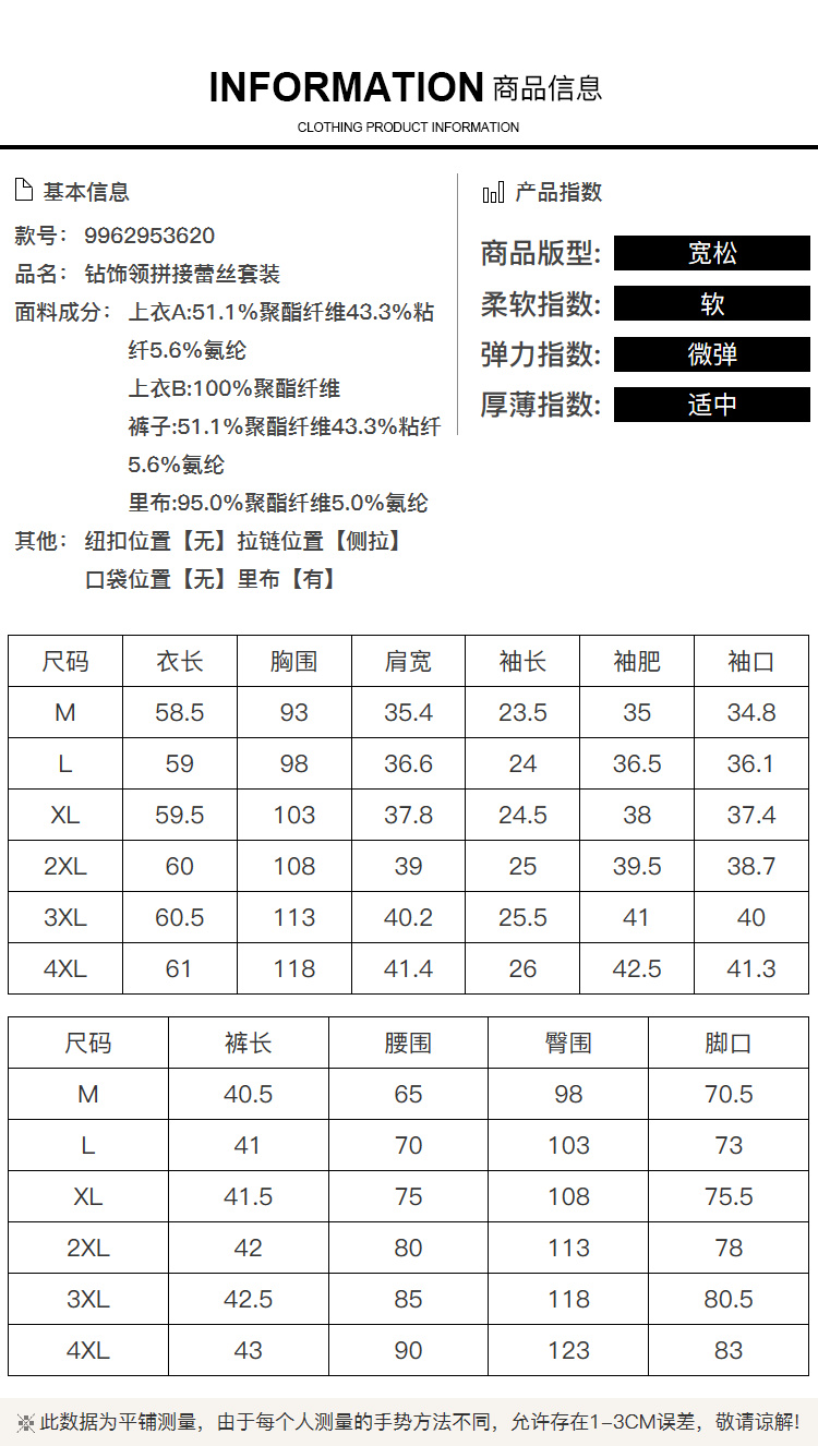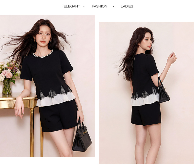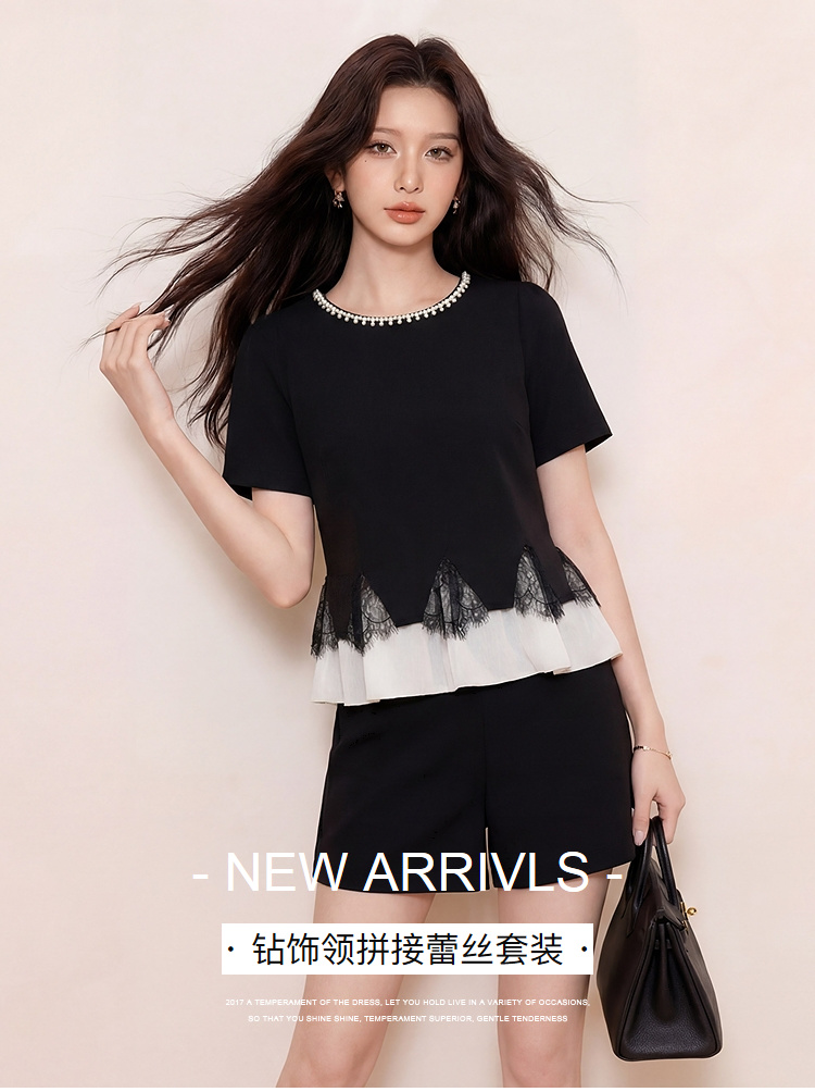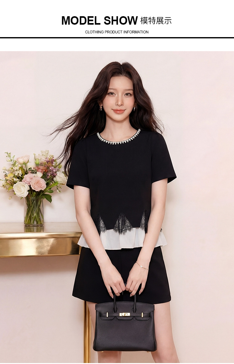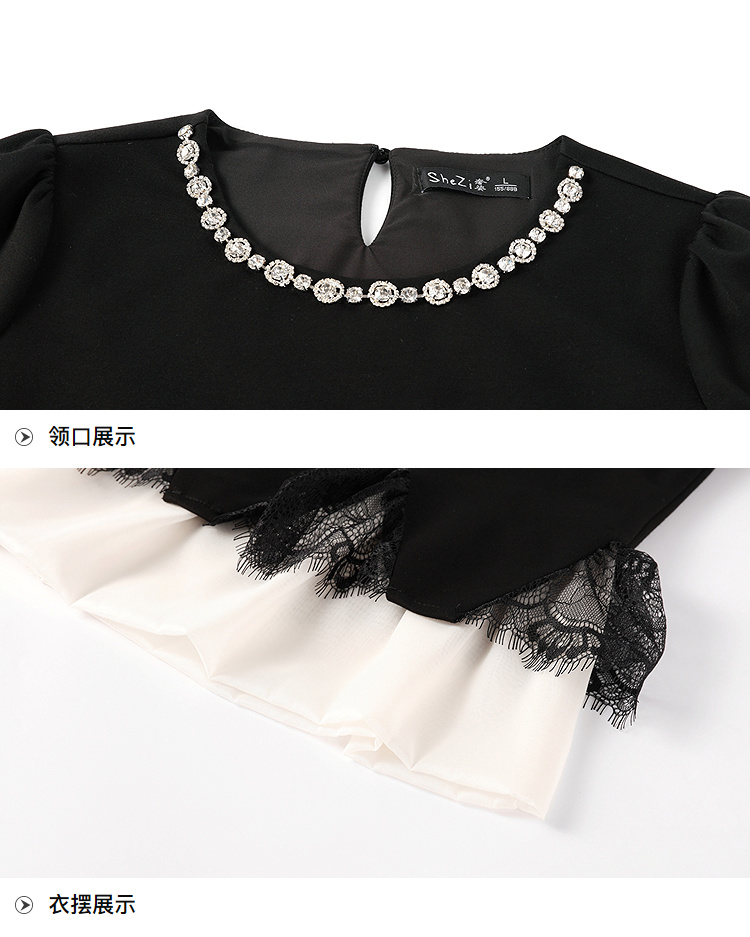 奢姿大码女装2026夏季胖妹妹钻饰领拼接蕾丝套装气质通勤两件套9962953620