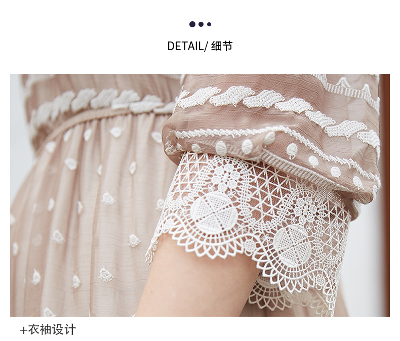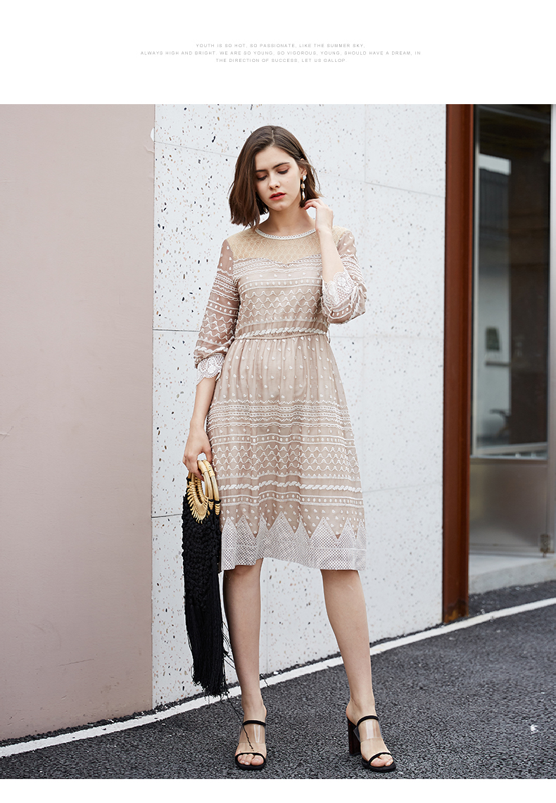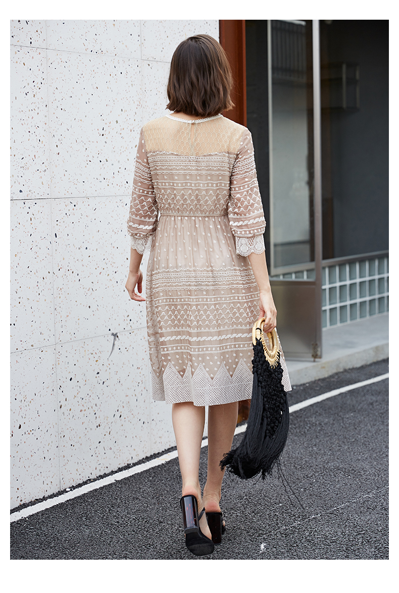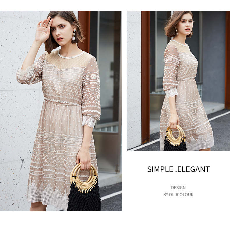 oldcolour夏季时尚圆领收腰复古宫廷风中袖连衣裙M13102458