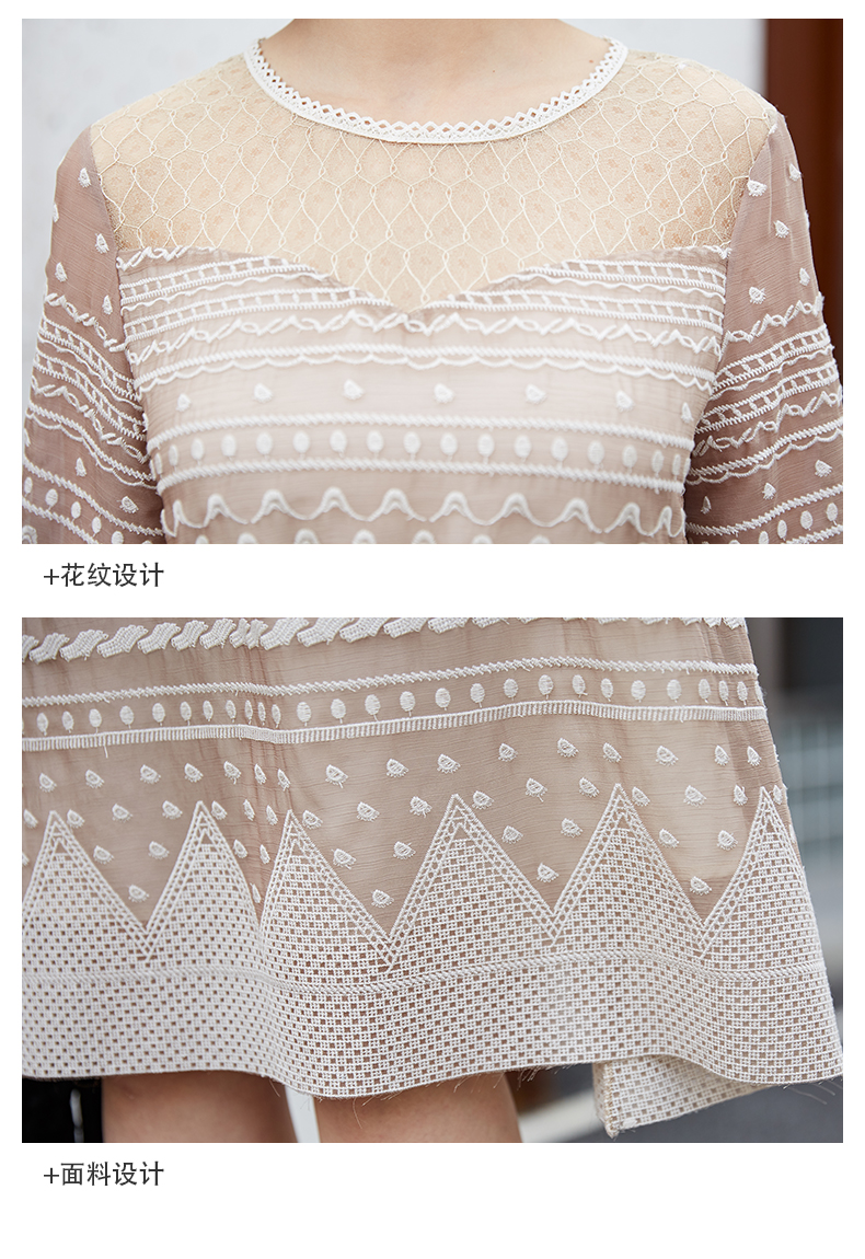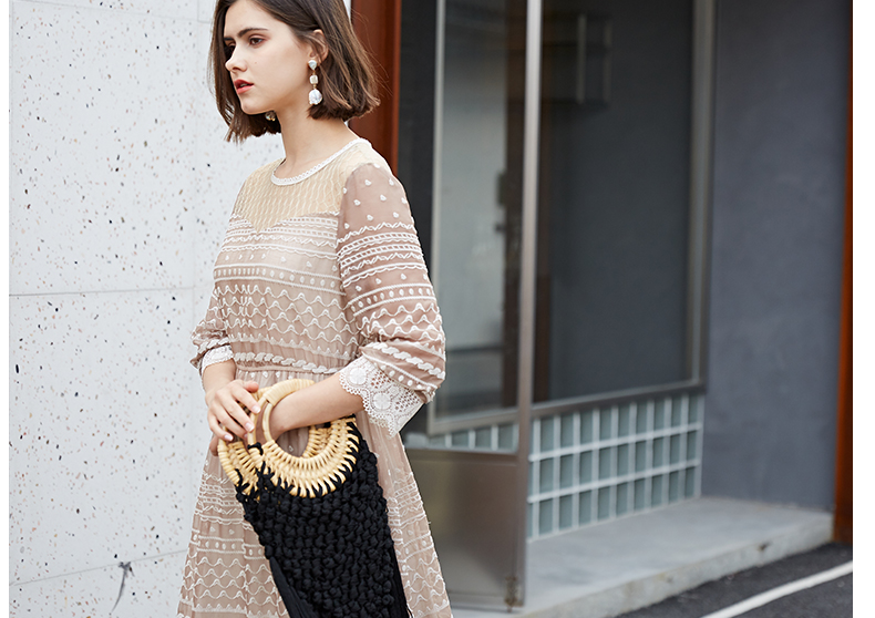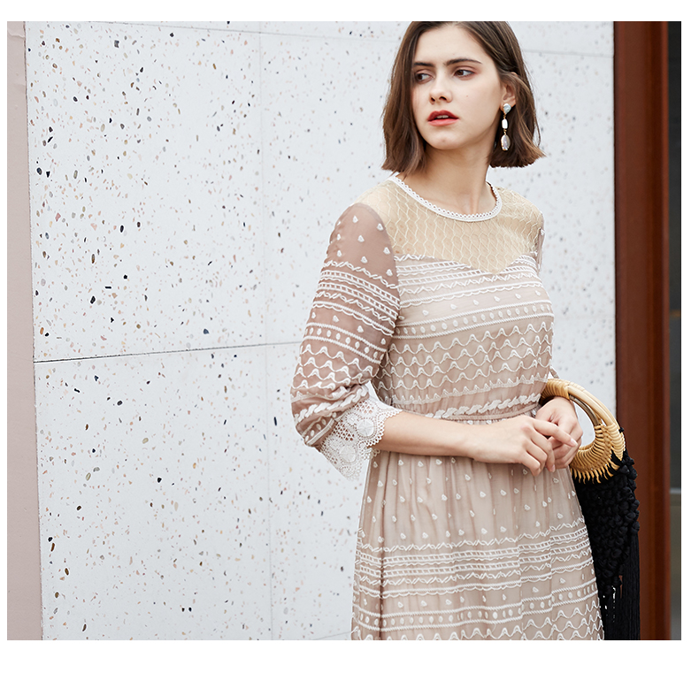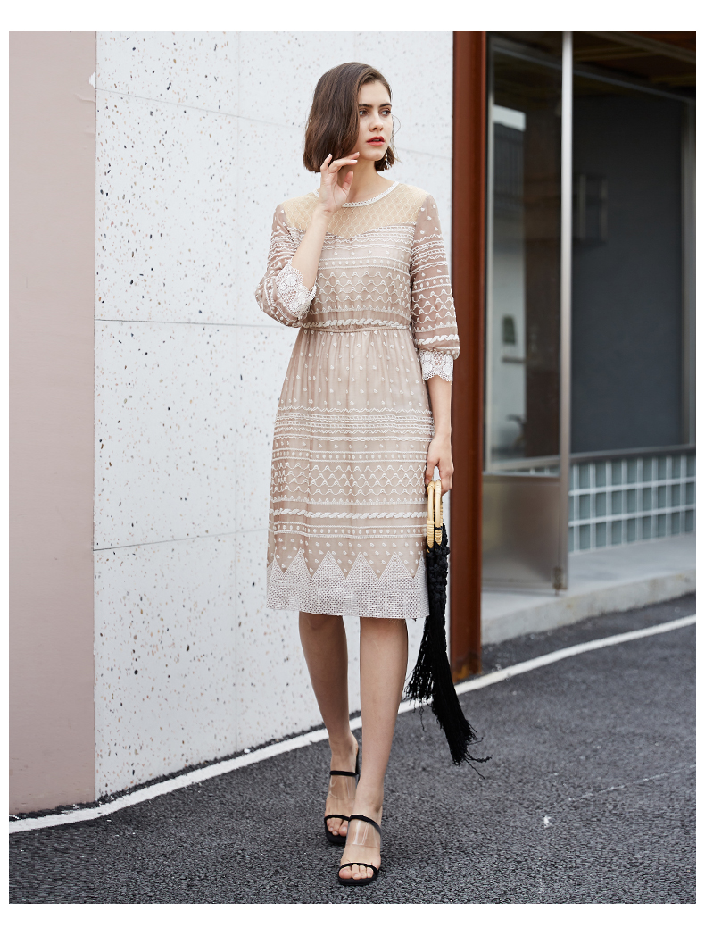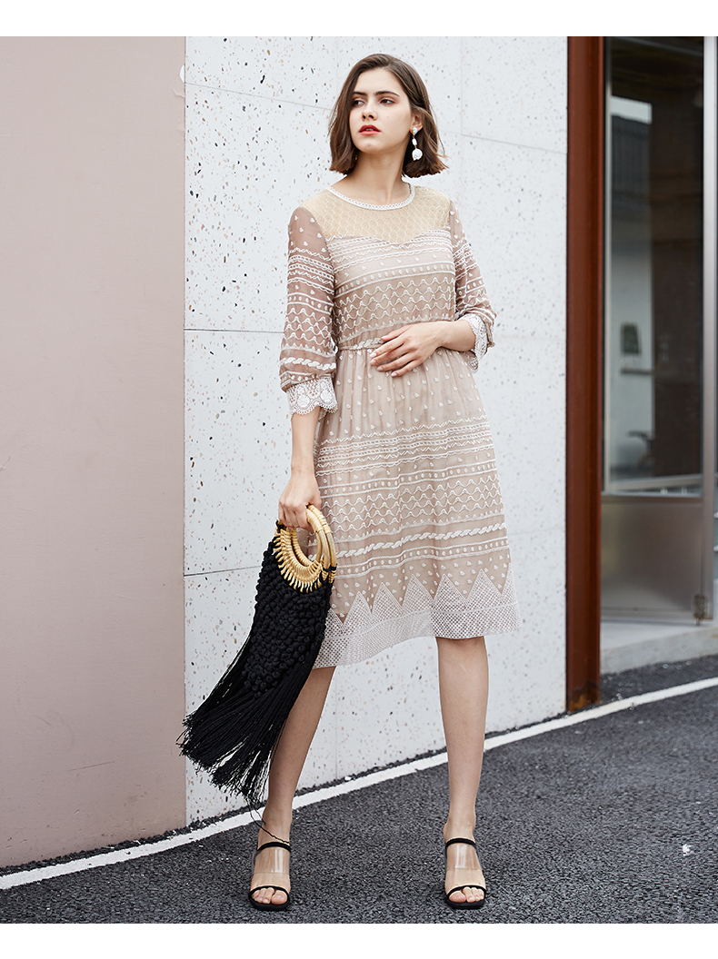 oldcolour夏季时尚圆领收腰复古宫廷风中袖连衣裙M13102458