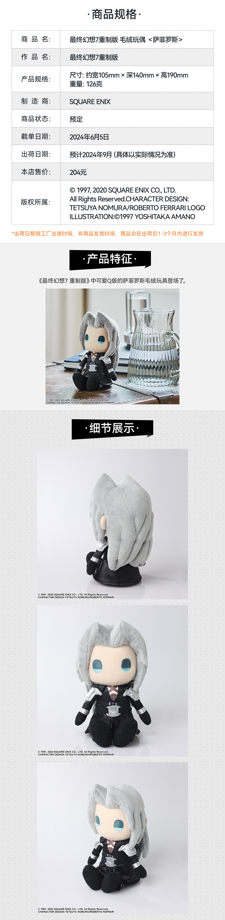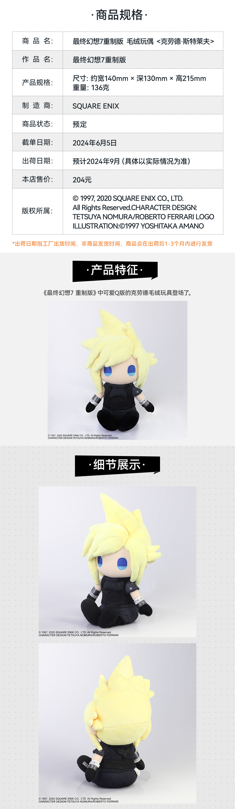 【GSC现货】最终幻想7重制版 毛绒玩偶 <克劳德·斯特莱夫>/<萨菲罗斯>