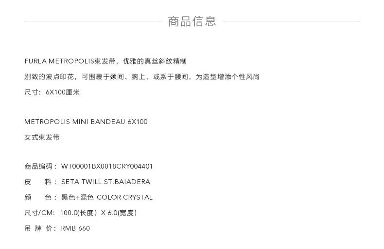 FURLA芙拉 METROPOLIS 女士迷你丝巾束发带