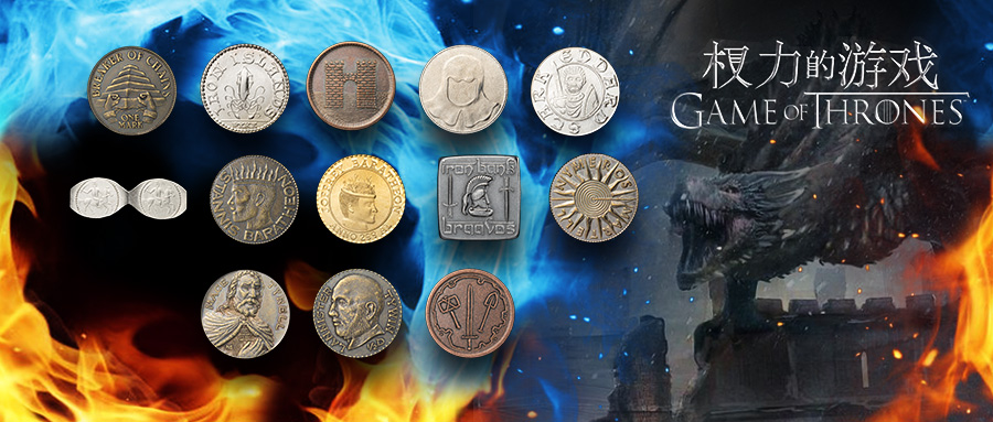 2021年,为了纪念《冰与火之歌》小说发行25周年,同时也是《权力的游戏》开播十周年,经小说原作者乔治·R·R·马丁授权,美国Shire Post Mint发行了一套《权力的游戏》纪念章,并由德国原装进口包装。