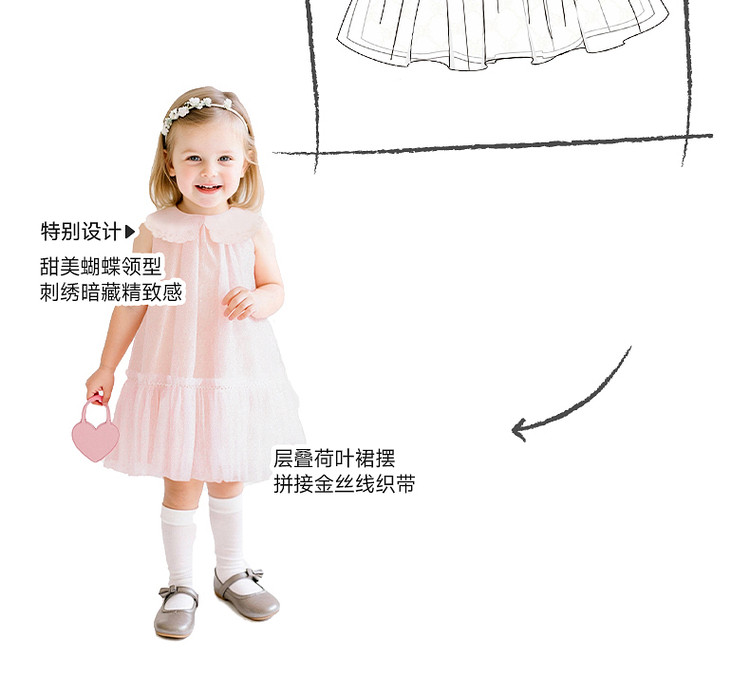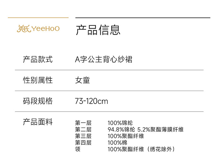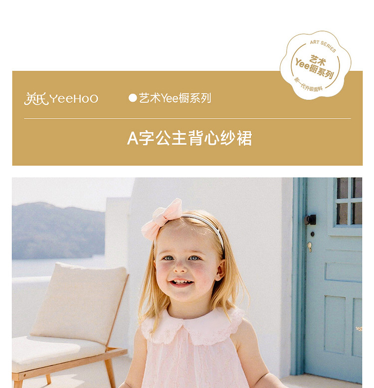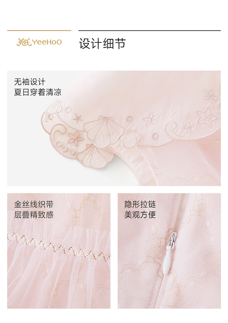 英氏女童花边公主裙夏季新款网纱连衣裙可爱背心裙子YRLFJ1S020A