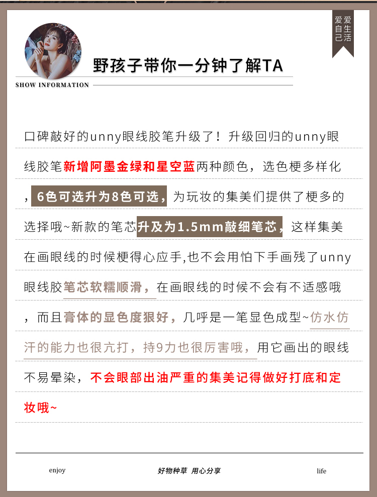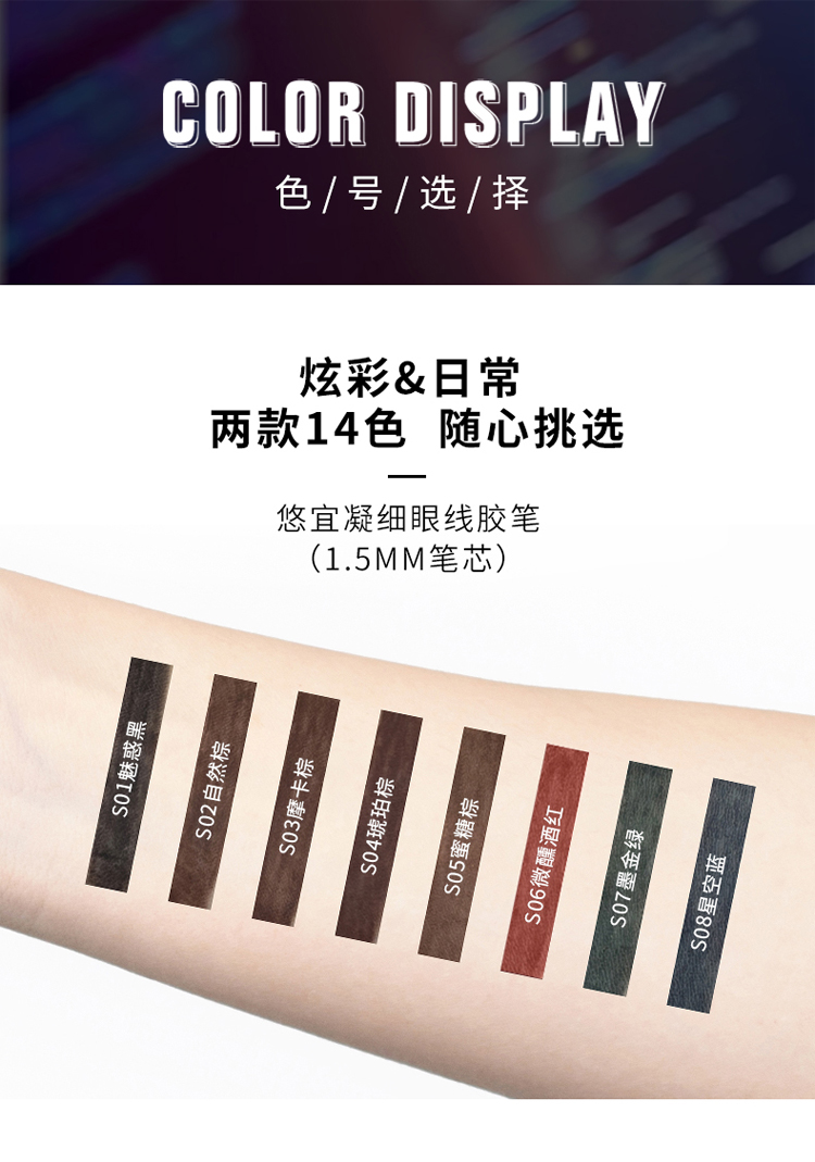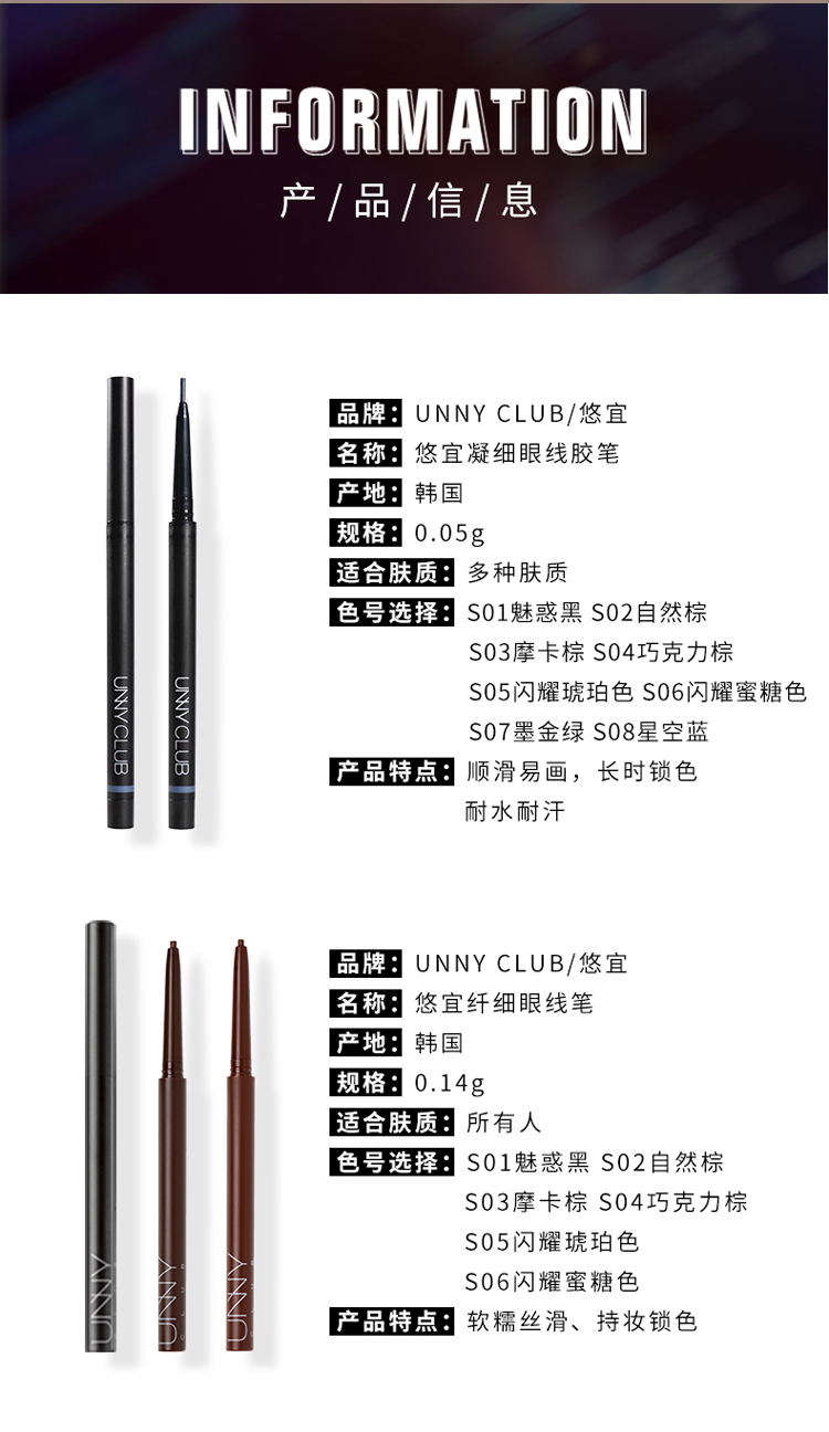 unny眼线胶笔内液膏卧蚕眼影眉笔极细棕色防水不晕染