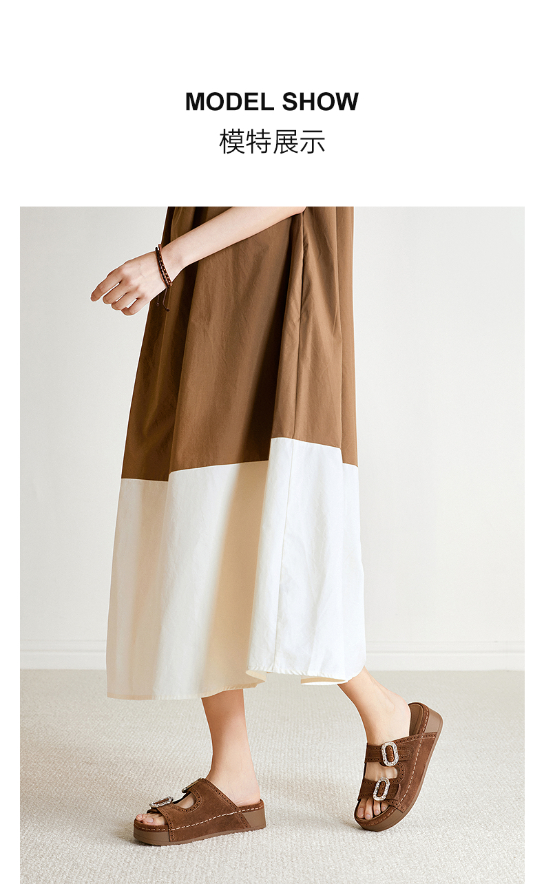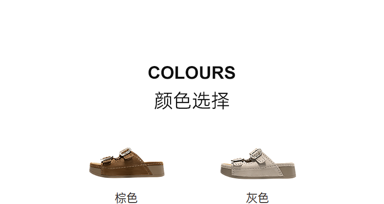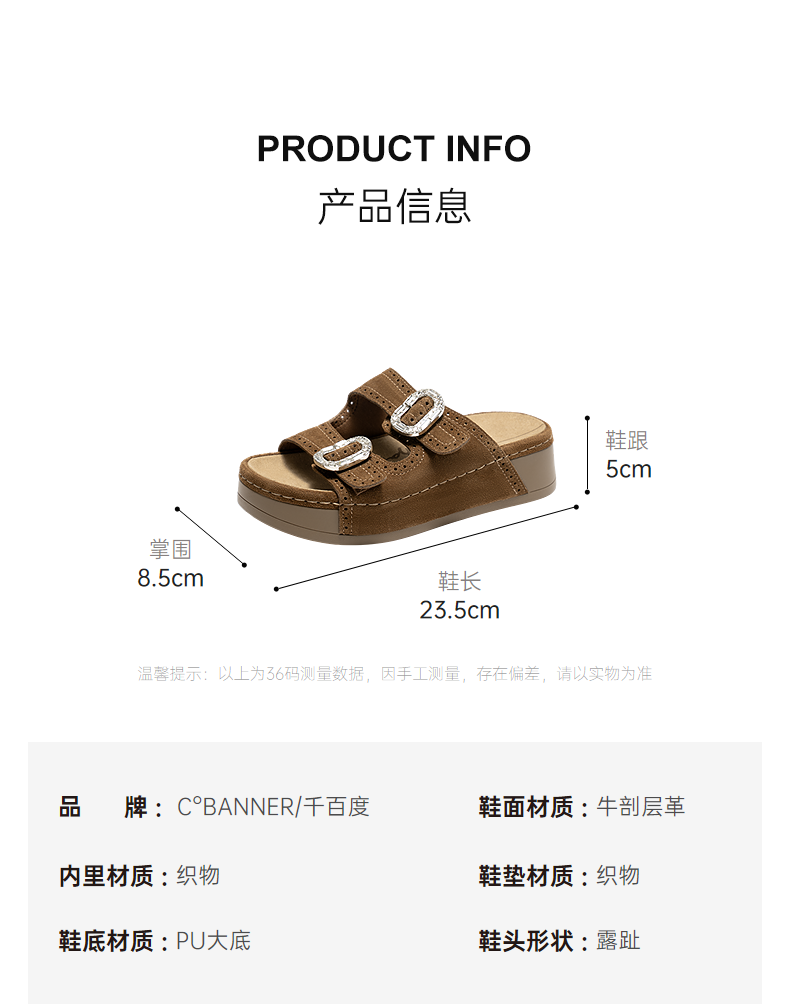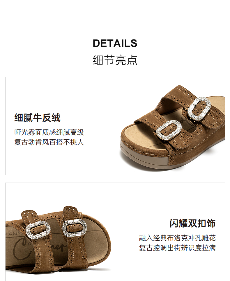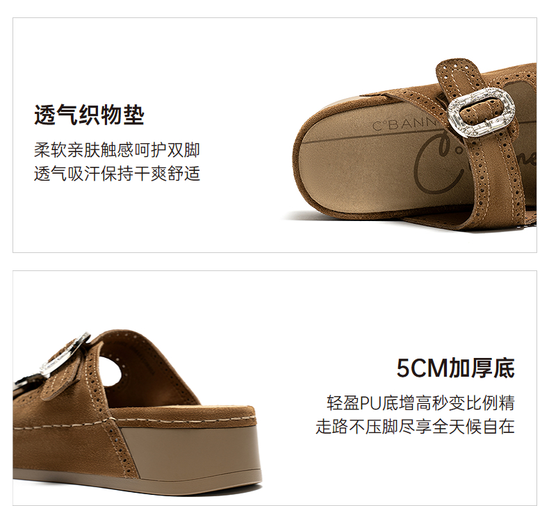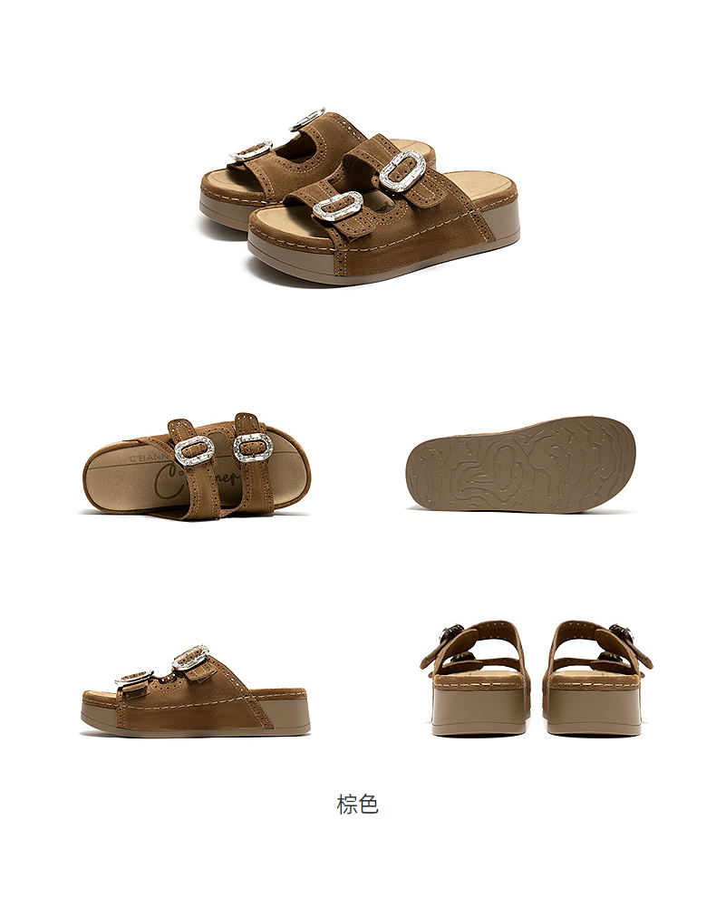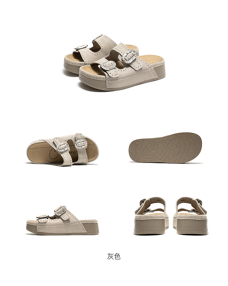 千百度厚底绒面扣饰休闲一字拖女2026夏季新款平底增高外穿凉拖鞋A26352151
