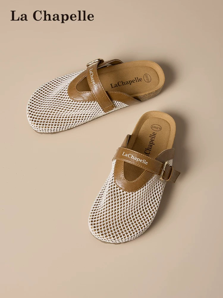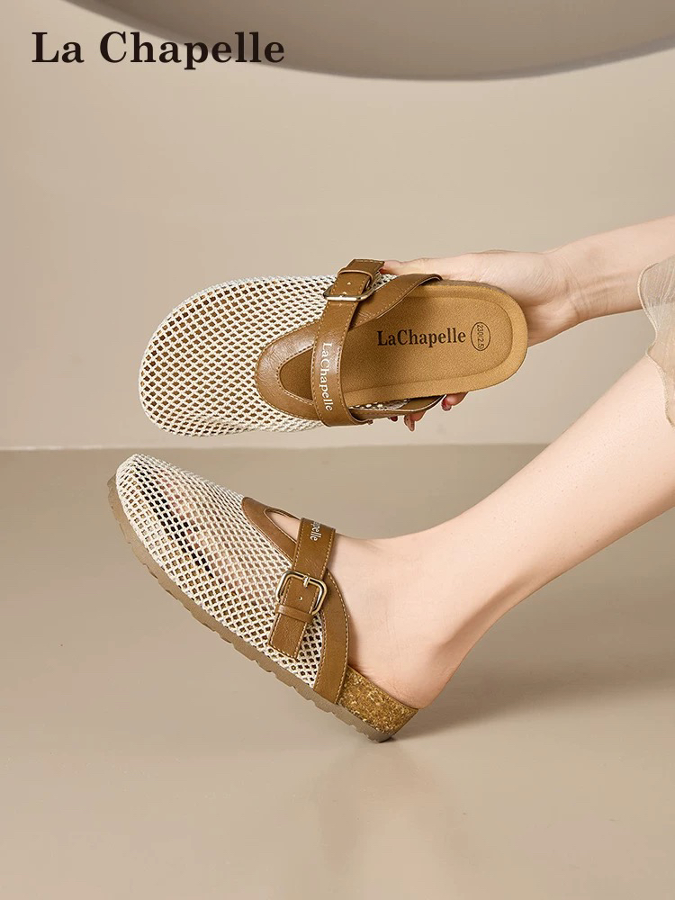 XY|拉夏贝尔勃肯半拖鞋女新款夏季包头一脚蹬镂空网面透气凉拖鞋JWGZ690