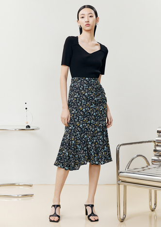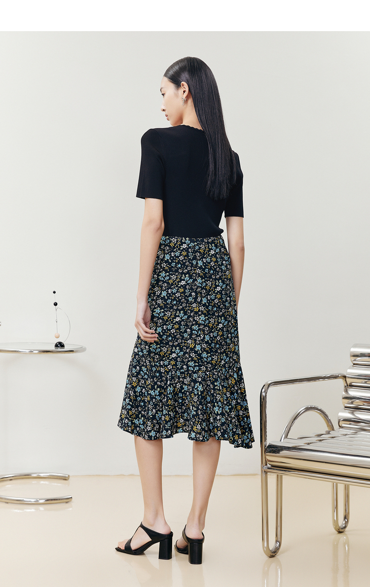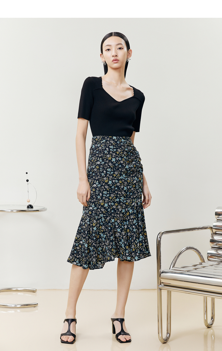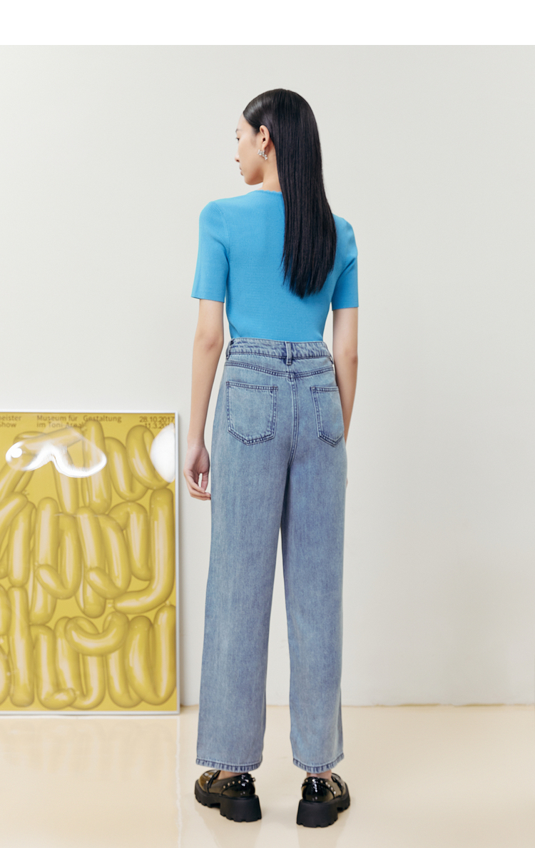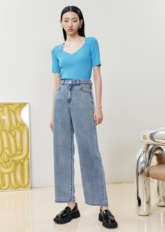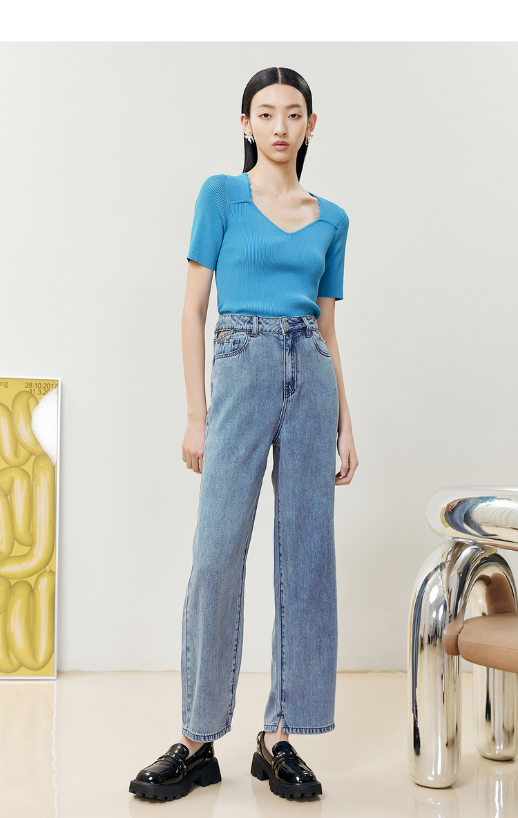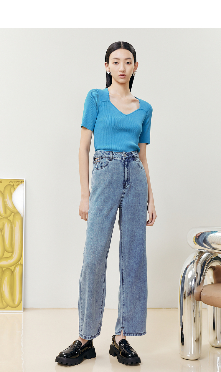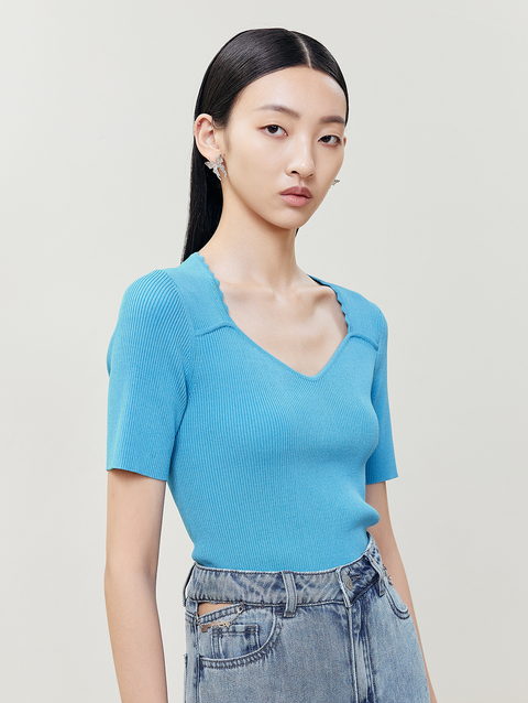 NEELLY纳俪商场同款短袖针织衫女短款修身套头上衣露锁骨针织衫N22061A01178