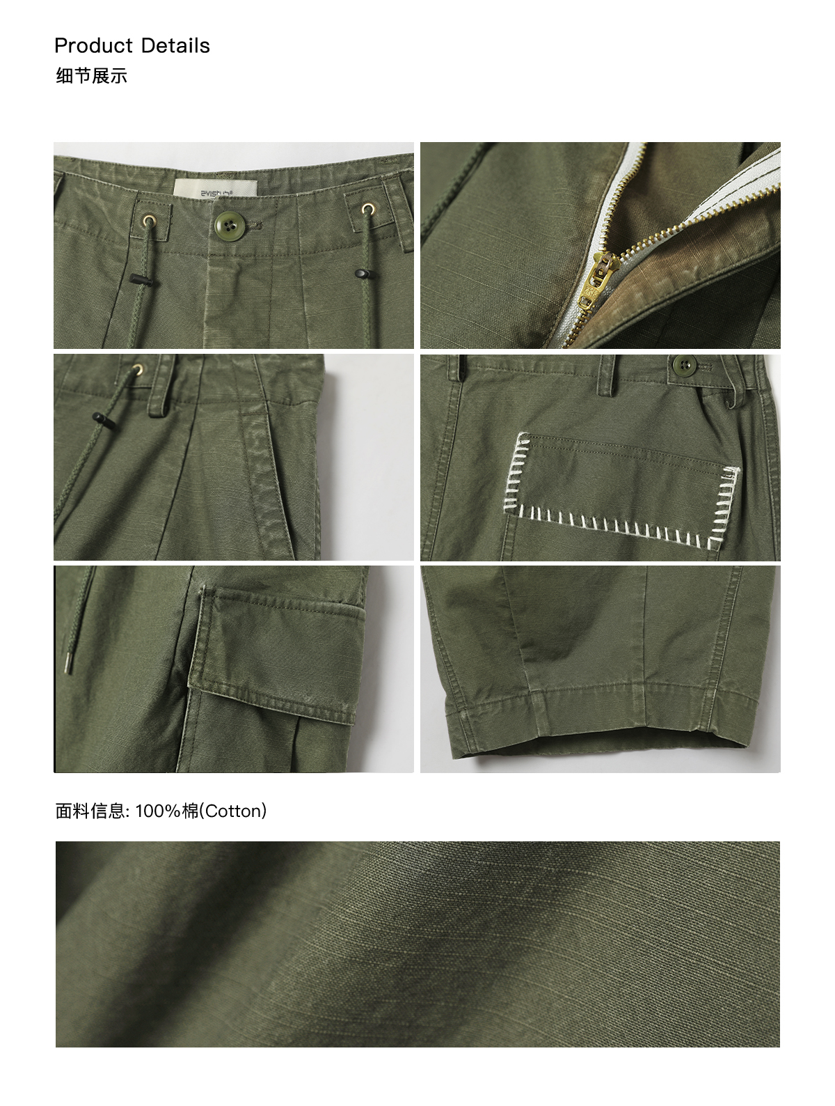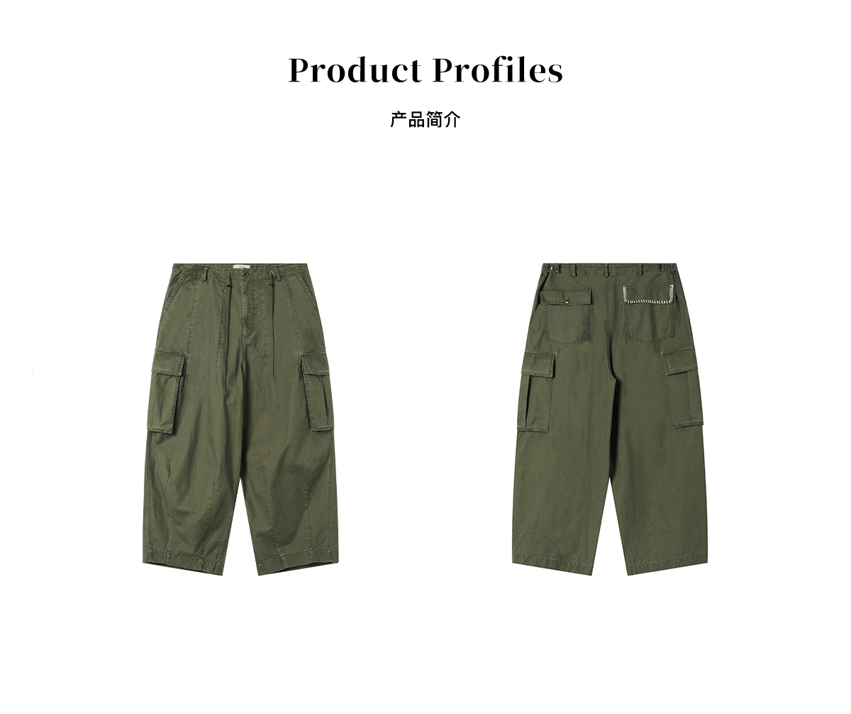 EVISTUB/E-4CCK104/竹节重磅石磨酵洗复古手工刺绣休闲阔腿工装裤