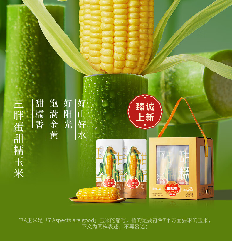 三胖蛋甜糯玉米新鲜真空包装加热即食黄玉米棒粗粮代餐228g 228g*9穗礼盒
