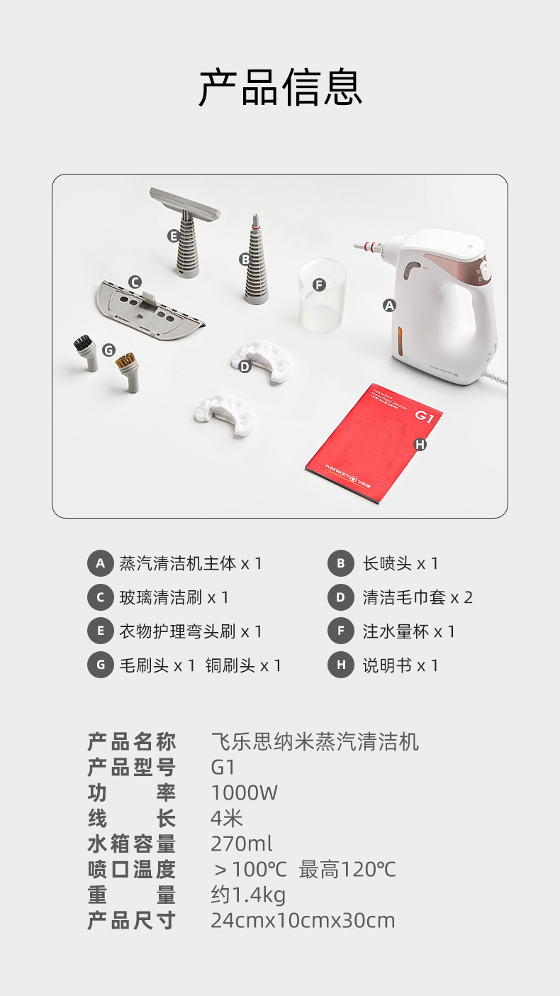 【顽固污渍清洁神器】飞乐思纳米蒸汽清洁机G1,家用厨房油烟机高压清洗机家电消du,高温蒸汽清洁机