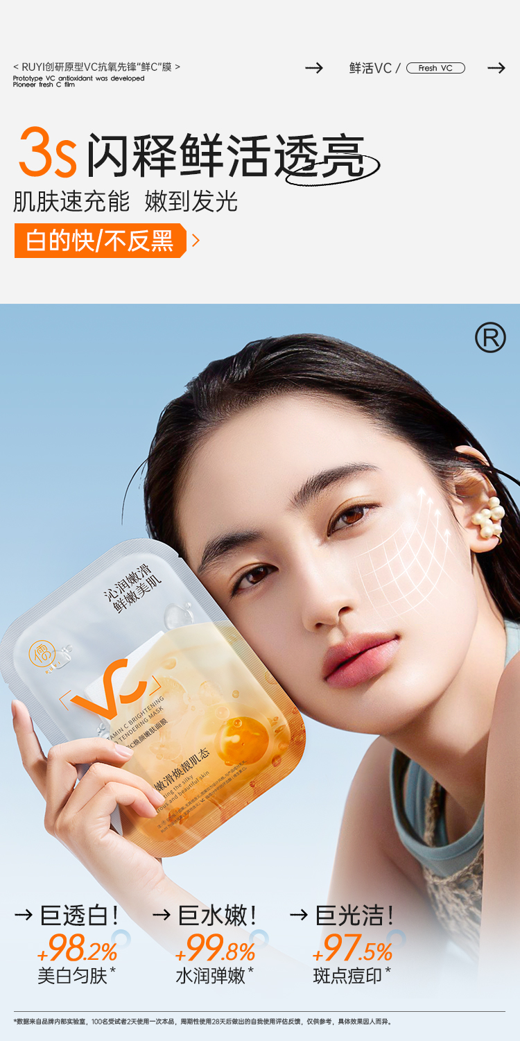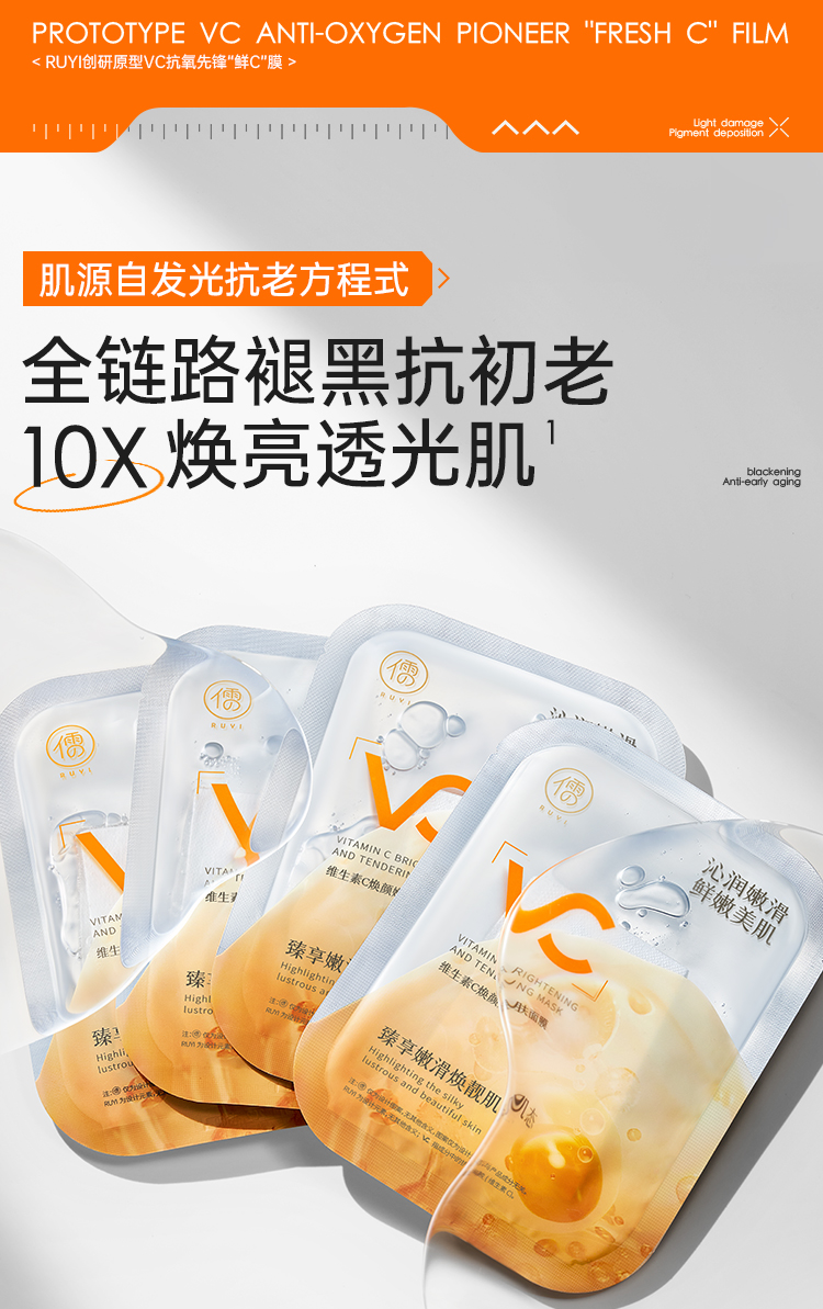 儒意维生素C焕颜嫩肤面膜10片/盒 VC美白补水面膜去黄气暗沉保湿熬夜急救提亮肤色|儒意官方商城