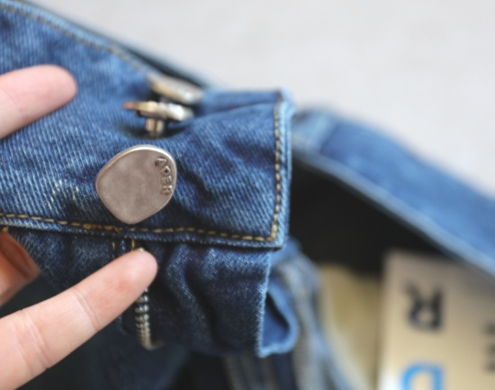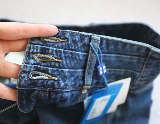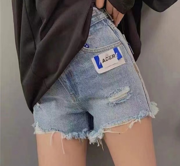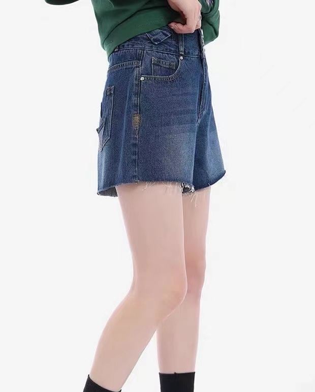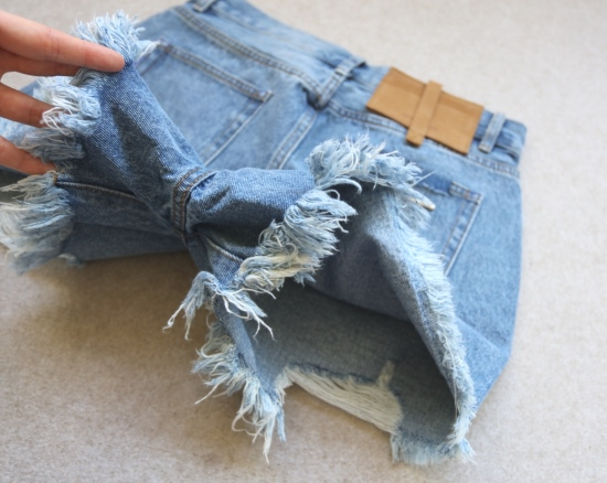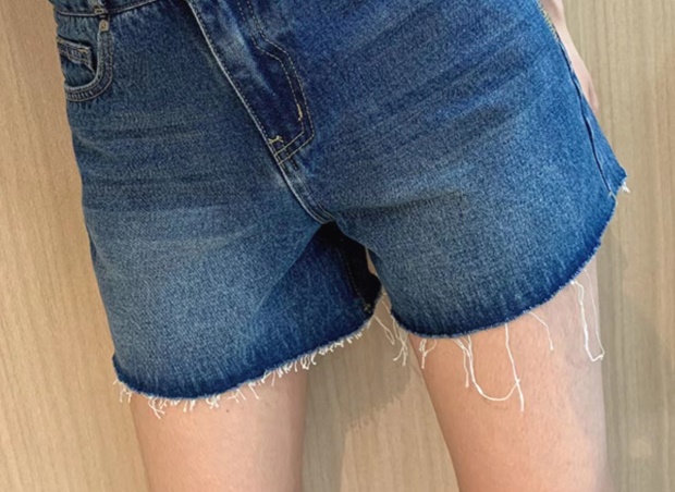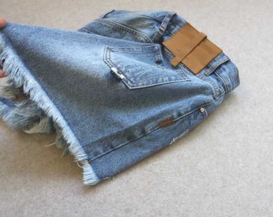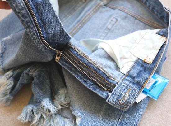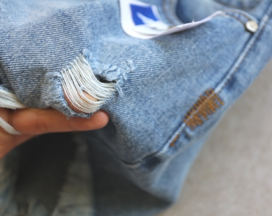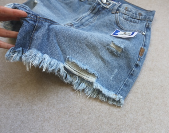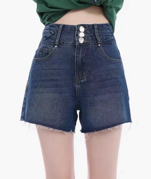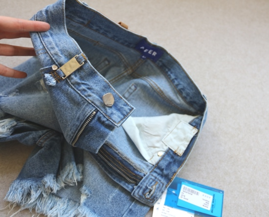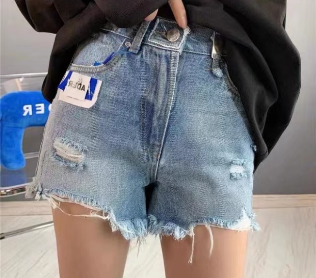 款一 单粒扣 腰间在肚脐 裤筒上的拉丝破洞 是露肉肉的