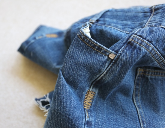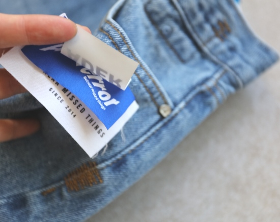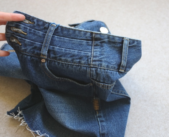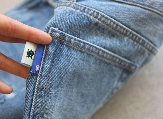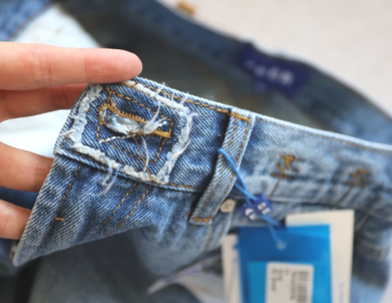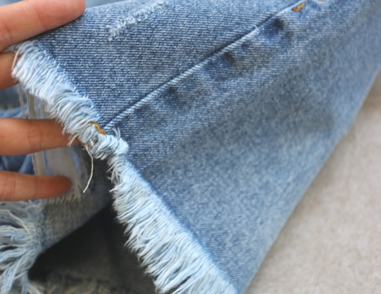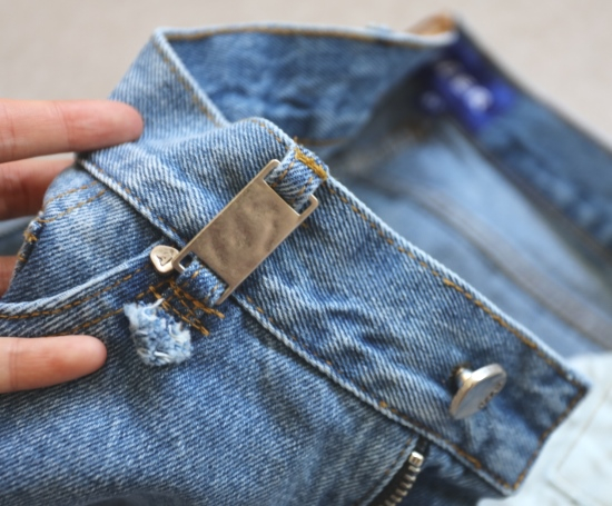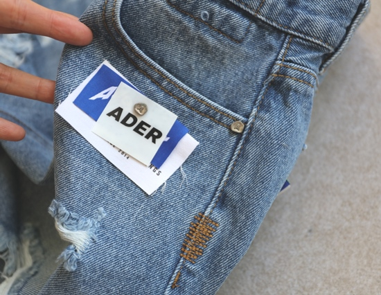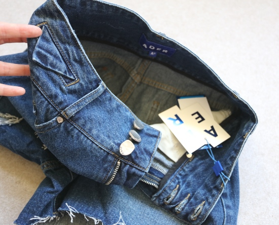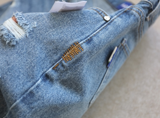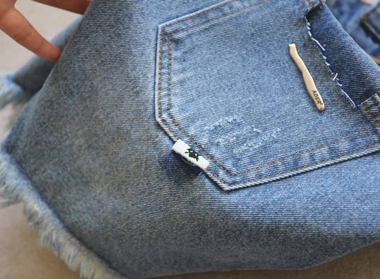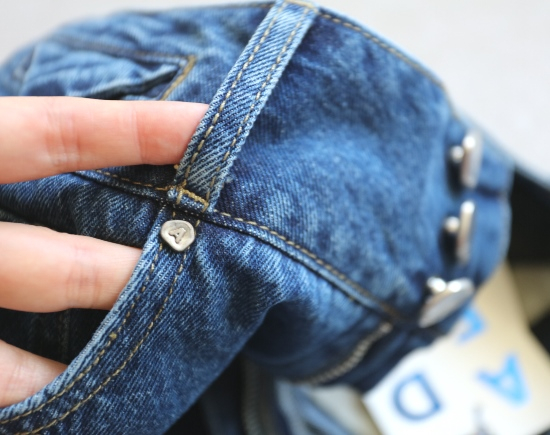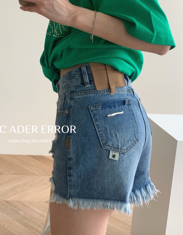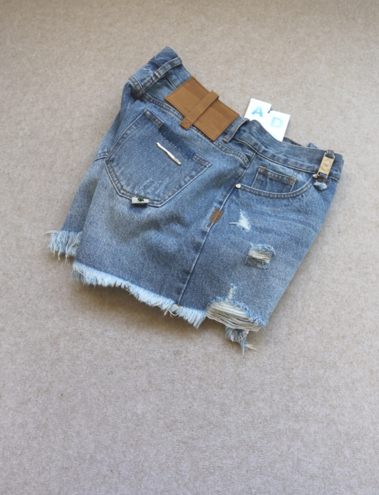 款一 单粒扣 腰间在肚脐 裤筒上的拉丝破洞 是露肉肉的