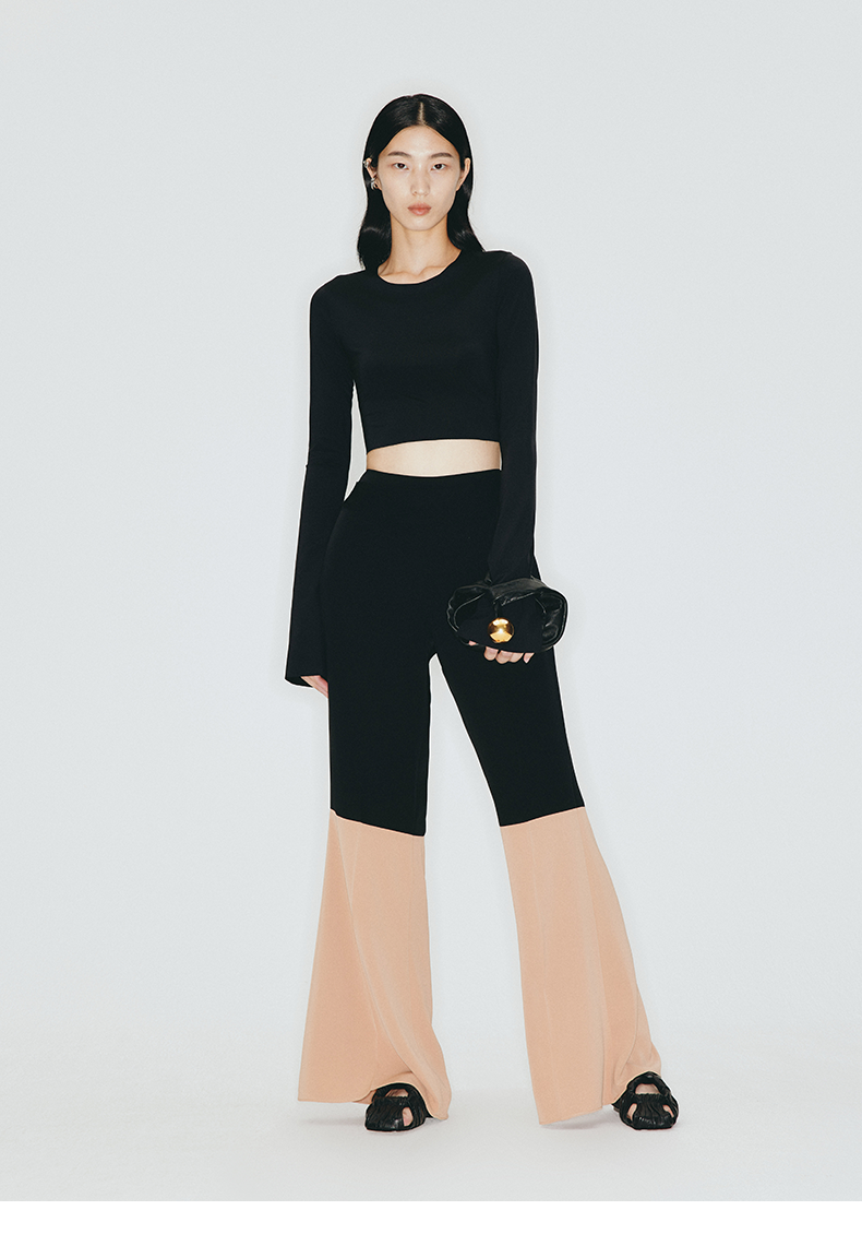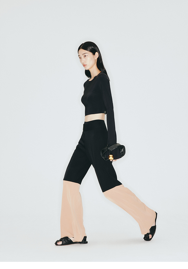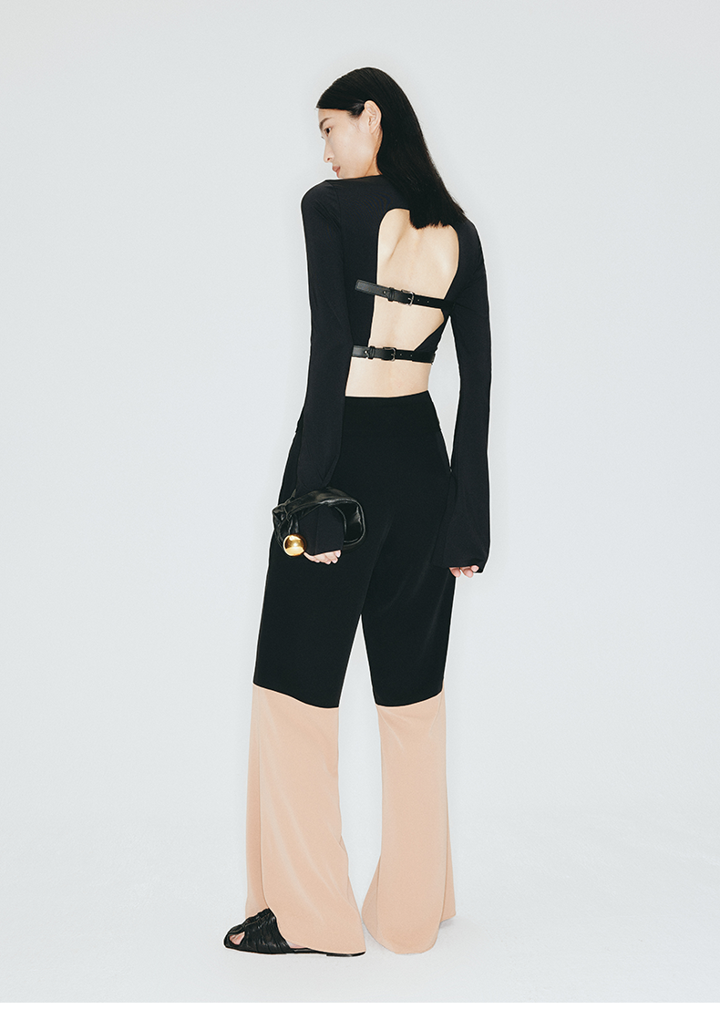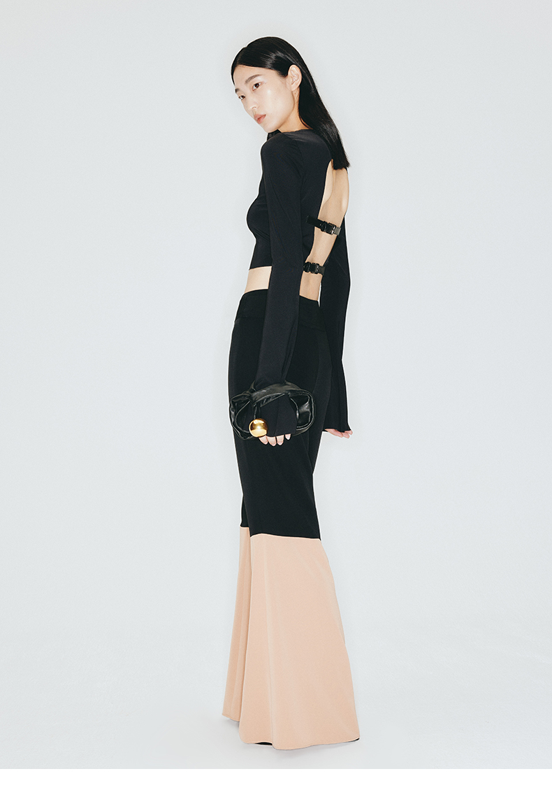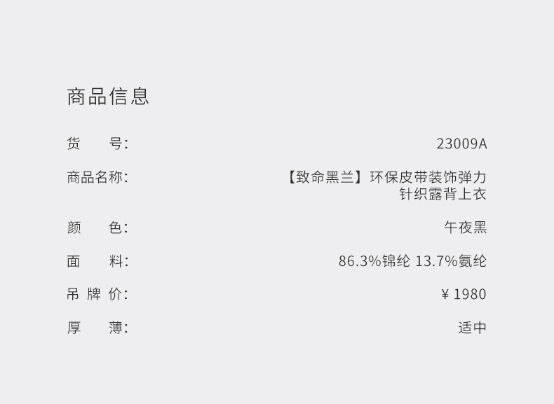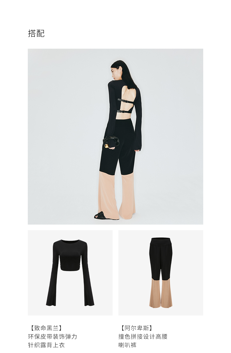 【致命黑兰】环保皮带装饰弹力针织露背上衣/23009A
