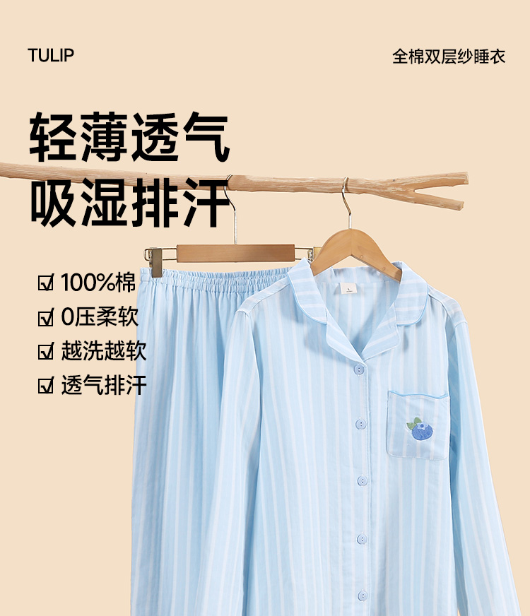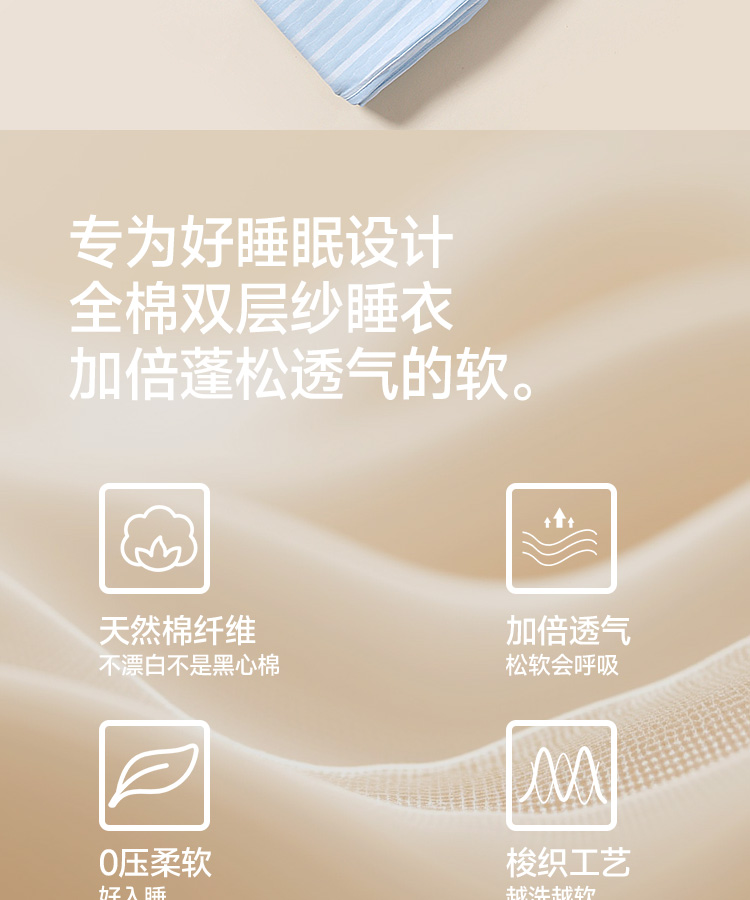 【直降34.9】全棉双层纱睡衣(蜜夏)
