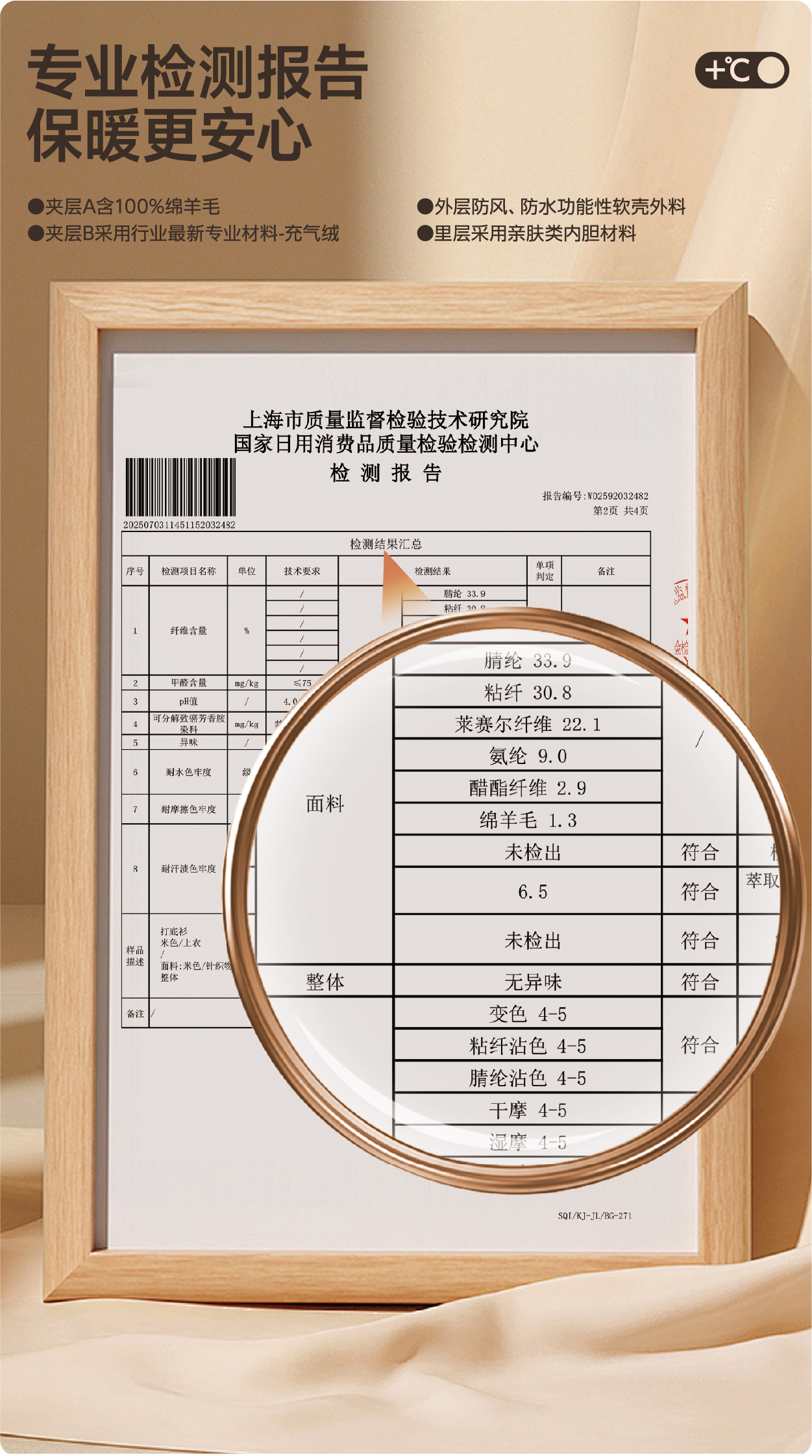 【纤维成分】:腈纶33.9%,粘纤30.8%,莱赛尔纤维22.1%,氨纶9.0%,醋酯纤维2.9%,绵羊毛1.3%