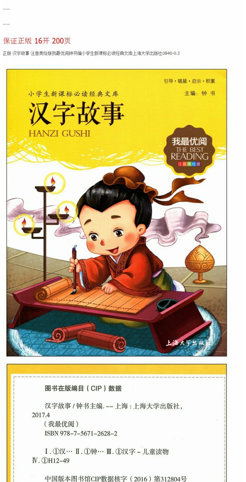 1-3年级适用 注音美绘版-汉字故事 钟书正版少儿读物我优阅系列拼音彩图版汉字故事 儿童文学课外读物小学生作文阅读写作能力