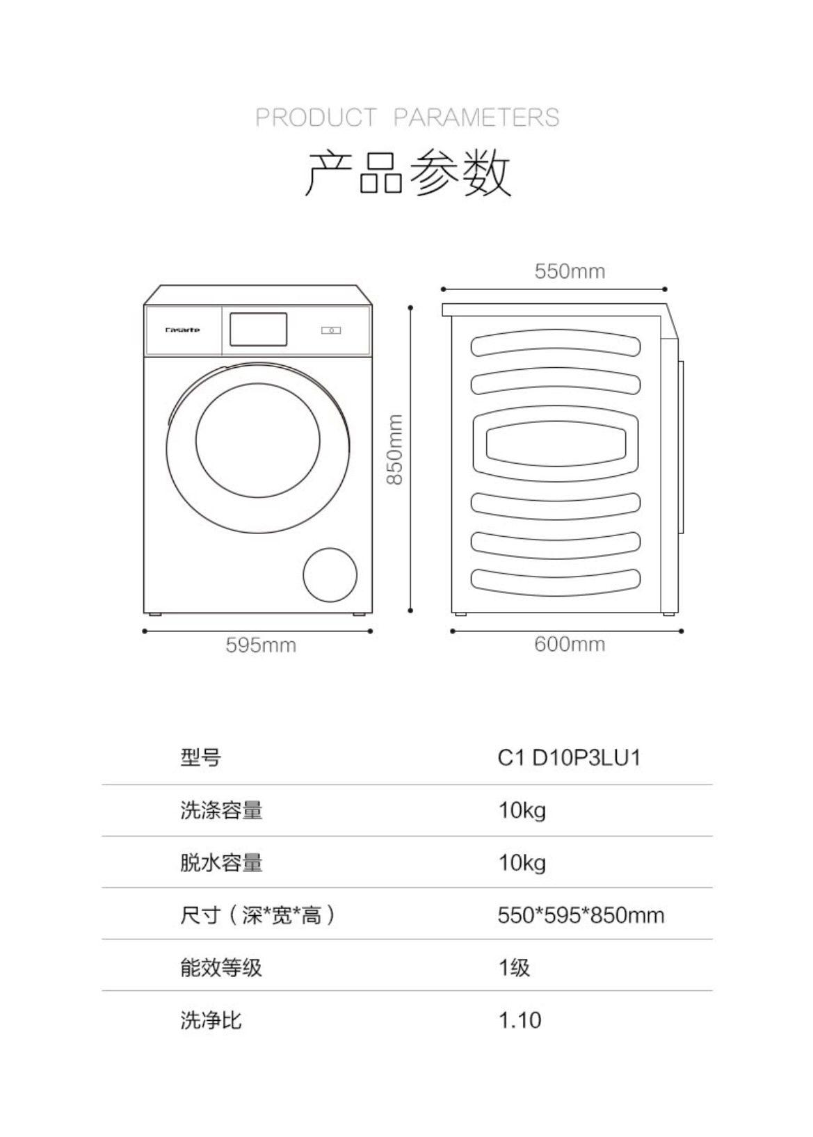 卡萨帝(Casarte)洗烘套装C1 D10P3LU1+CHBS N100FQP3U1