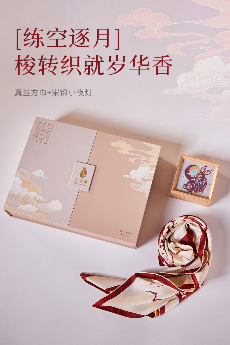 上久楷宋锦新中式中秋礼盒练空逐月大方巾文创国风礼盒送礼
