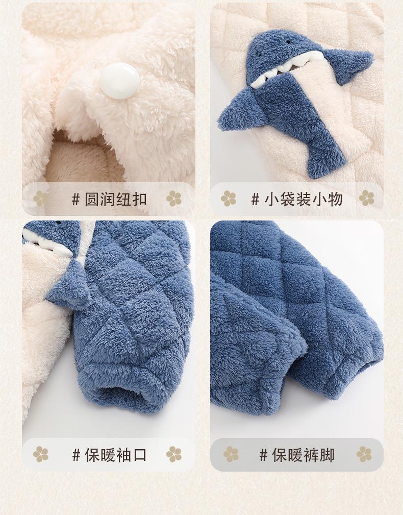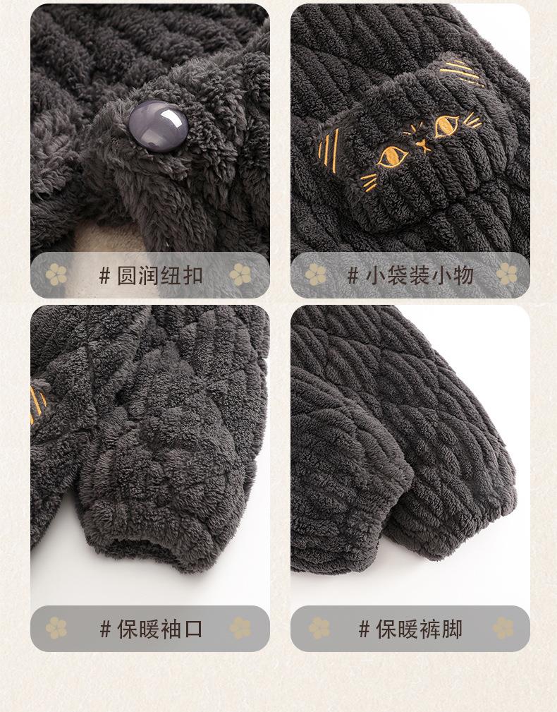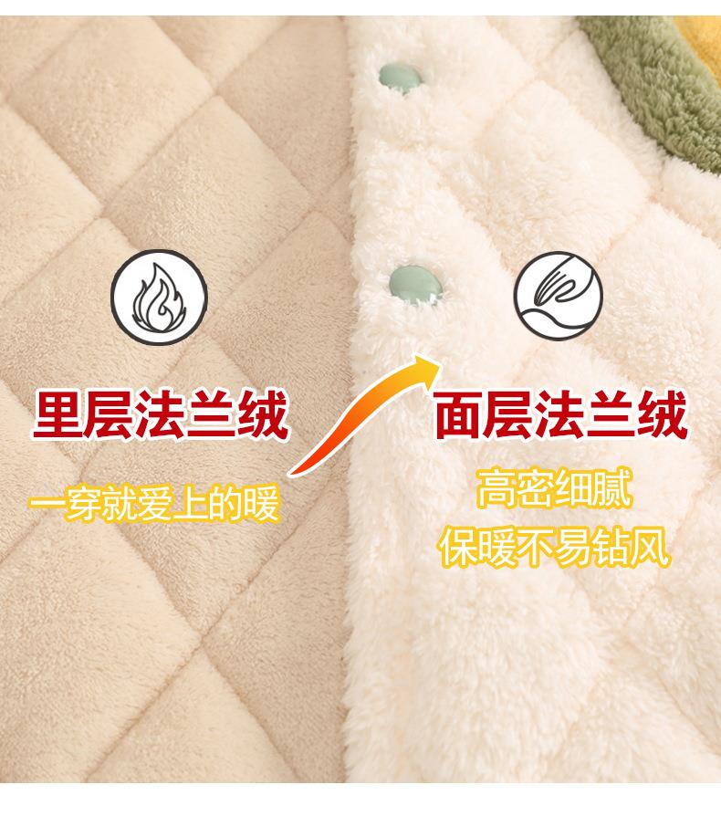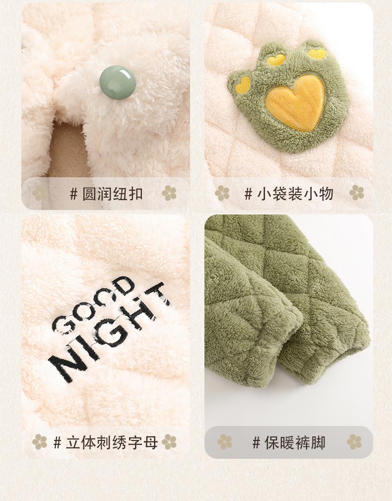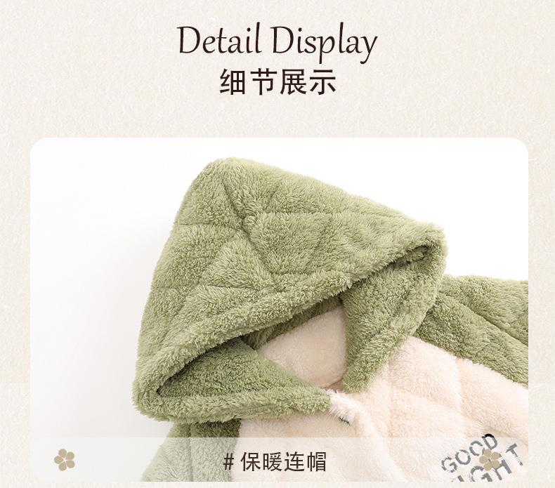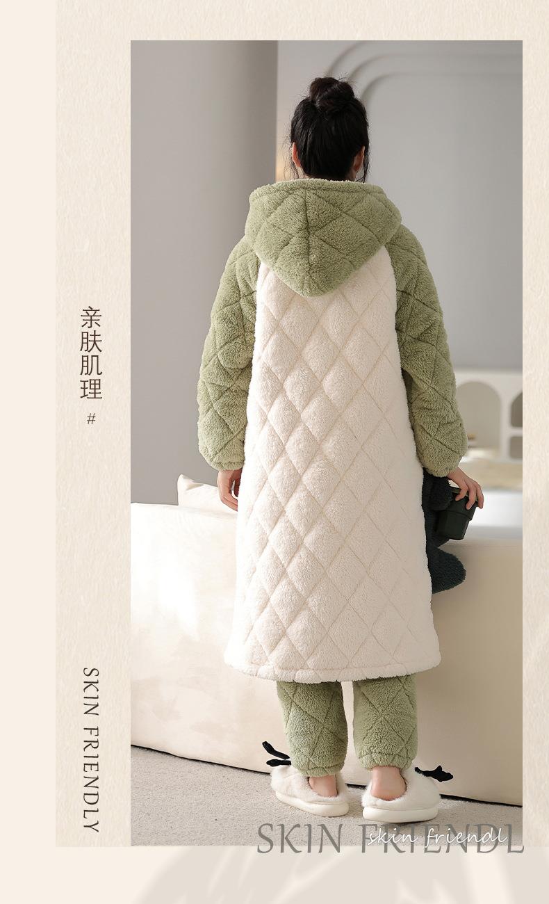 睡衣女可爱卡通珊瑚绒加厚三层夹棉睡袍家居服中长款保暖棉袄套装