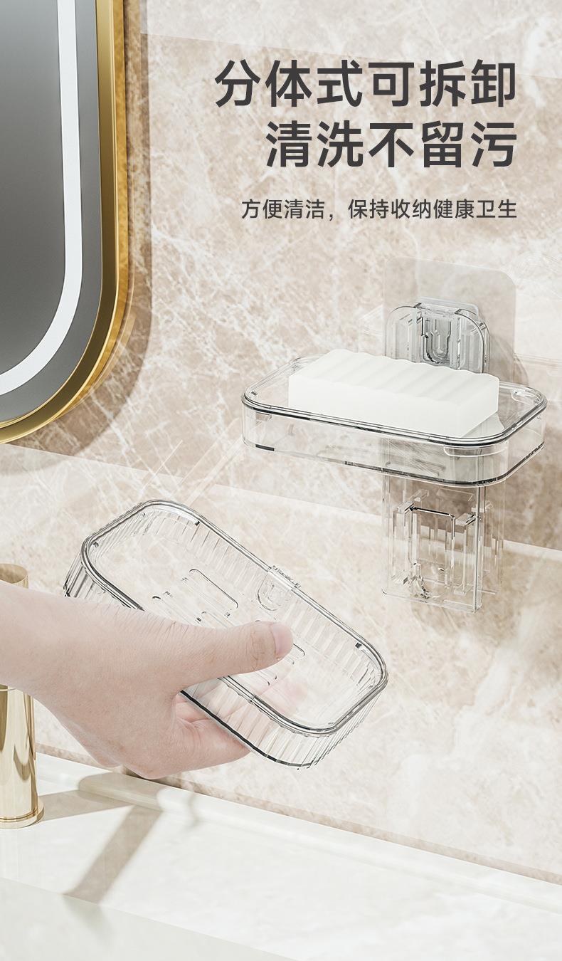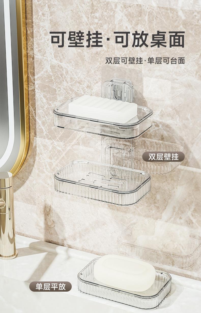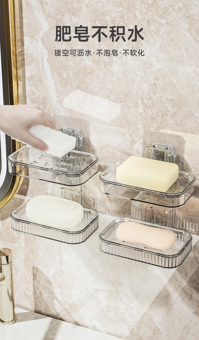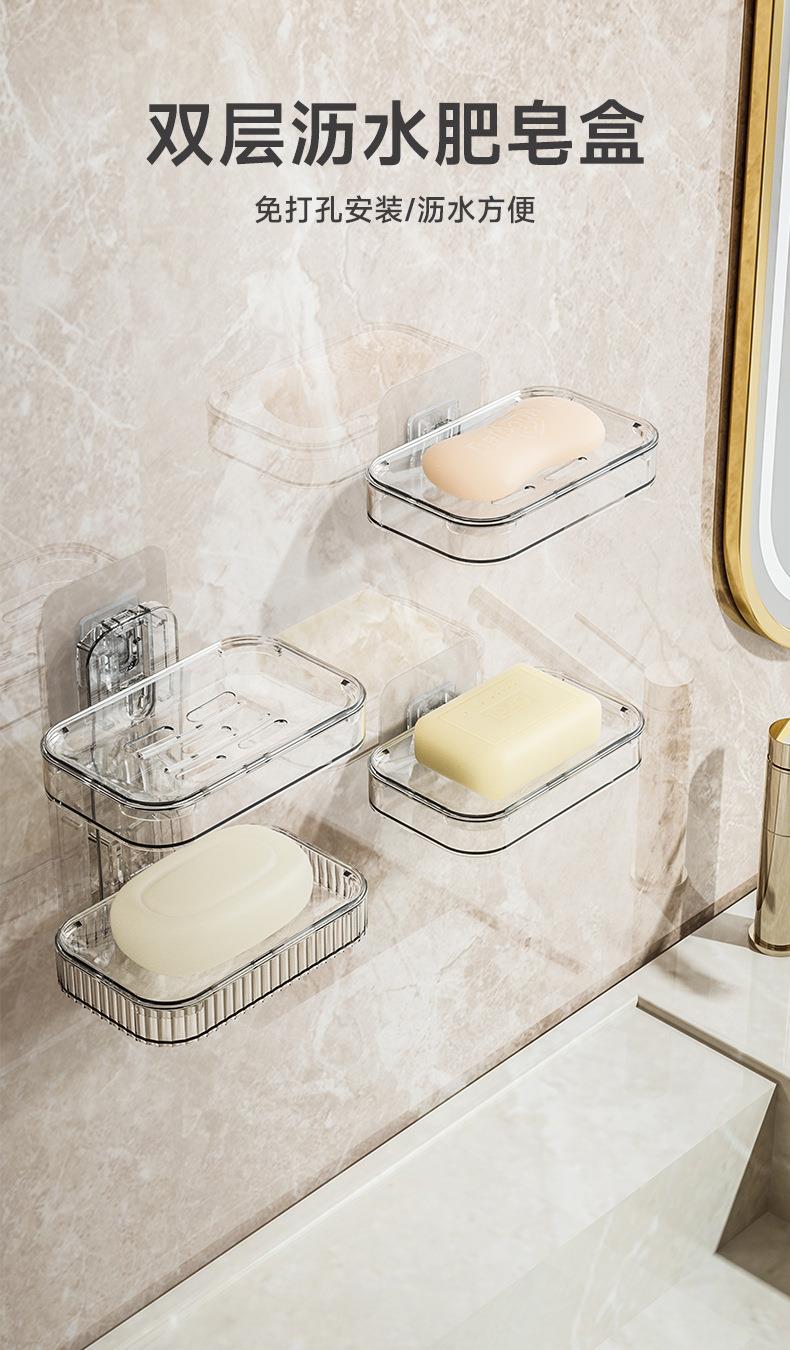 肥皂盒壁挂式沥水家用免打孔创意新款双层置物架卫生间浴室香皂盒