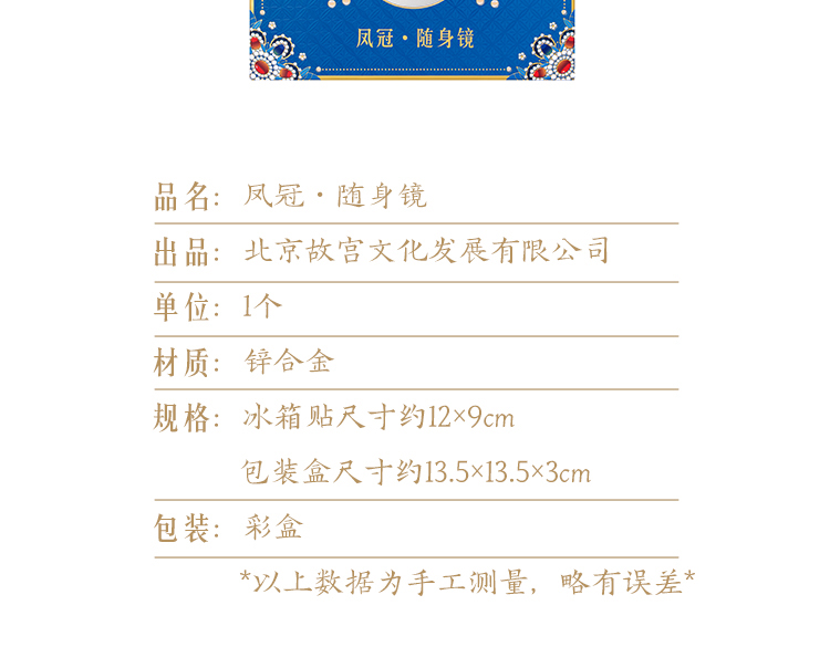 【故宫冰箱贴】凤冠冰箱贴随身镜冰箱贴博物馆文创生日礼物镜子伴手礼