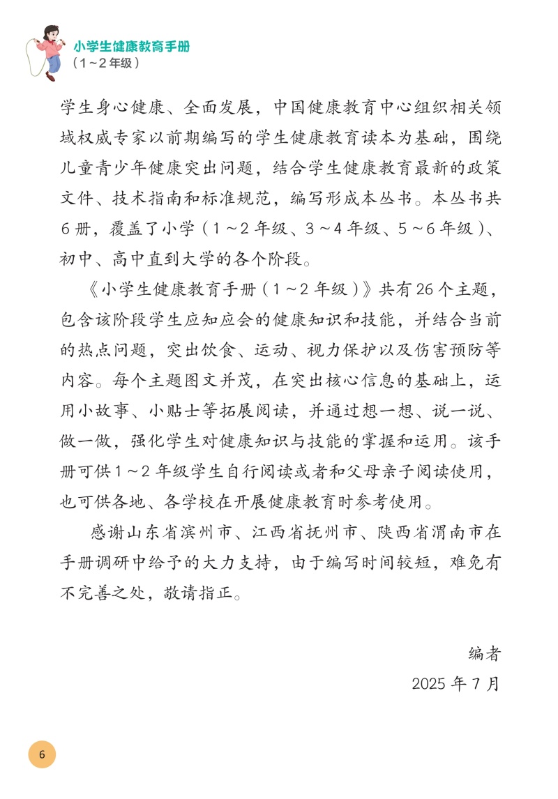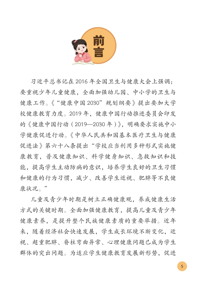 本书覆盖小学1~2年级阶段学生生理、心理发育和行为发展所面临的重点健康问题,并结合当前的热点问题,突出视力保护、运动和垃圾分类等内容。内容设计编排上结合该年龄段学生需求和阅读习惯,在突出核心信息的基础上充分运用故事、案例以及延伸阅读、做一做、想一想等多种形式,图文并茂,强调健康知识和技能。整体框架设计遵循丛书的整体风格,既有延续性又有可发展性,撰写中充分考虑1~2年级小学生的阅读能力、认知水平以及阅读喜好,文字简明、条理清晰,详细回应1~2年级小学生关注的健康和现实生活热点话题,具有较强的可读性和指导性。