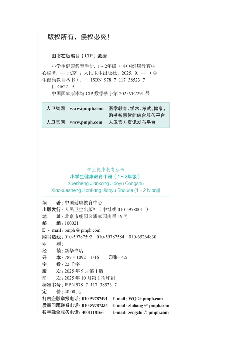 书名:学生健康教育丛书——小学生健康教育手册(1~2年级)