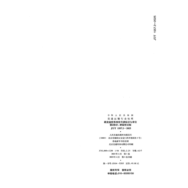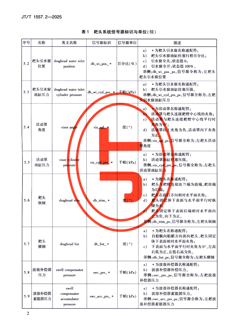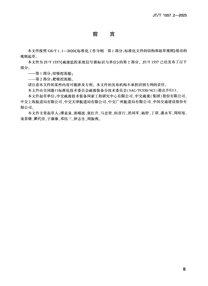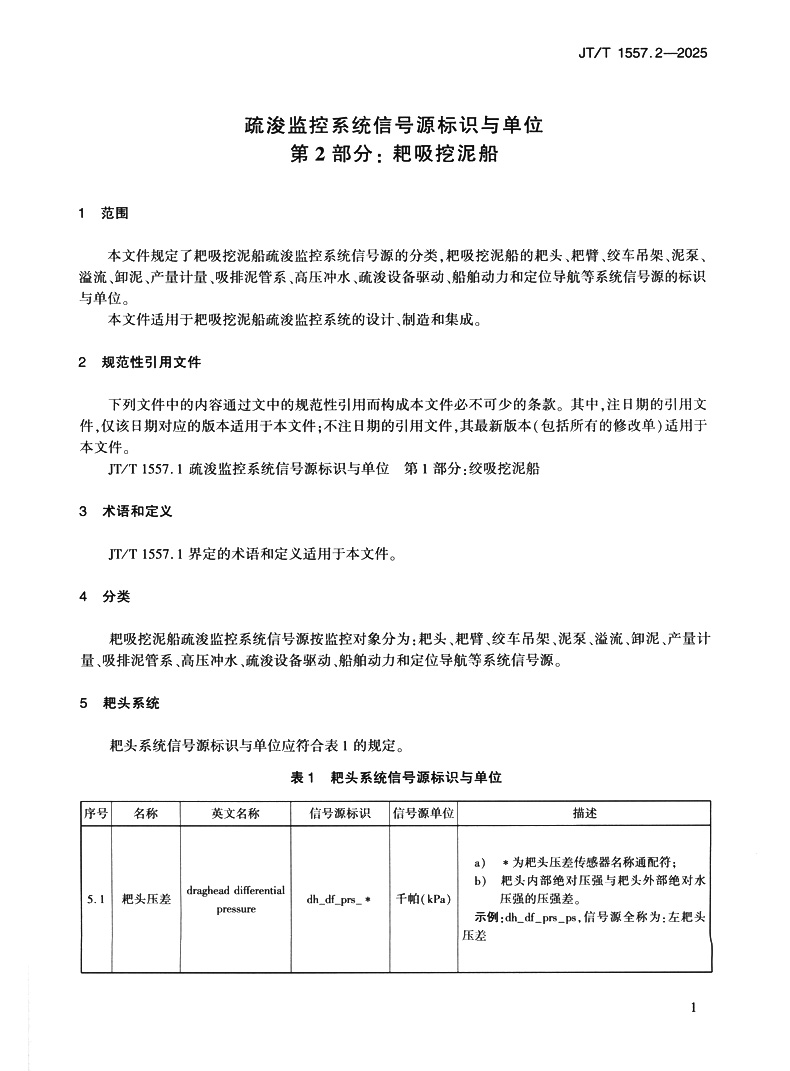 书名:疏浚监控系统信号源标识与单位 第2部分:耙吸挖泥船(JT/T 1557.2—2025)