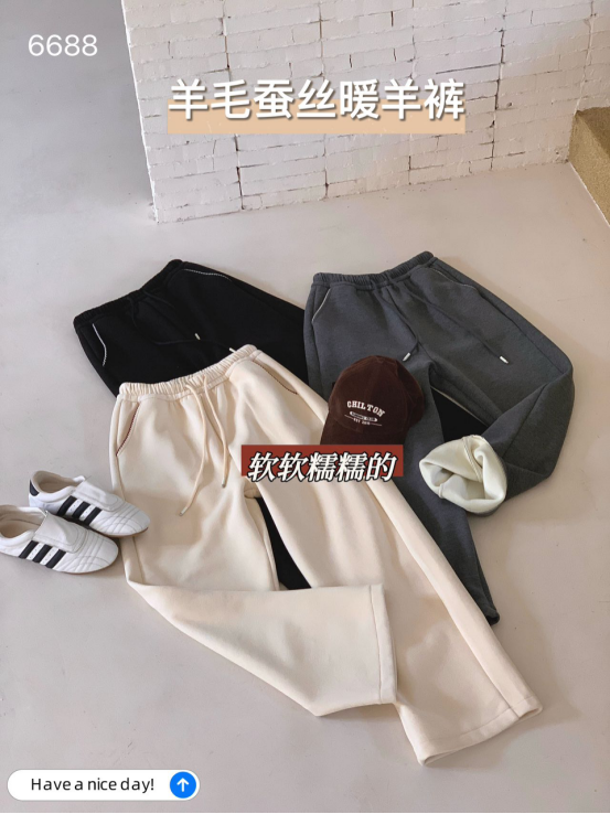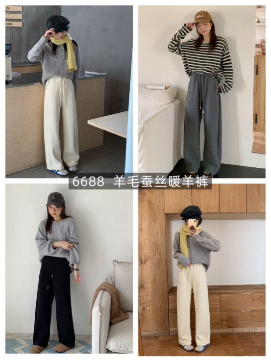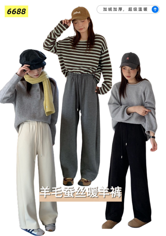 骆柒柒#6688羊毛蚕丝暖羊直筒裤