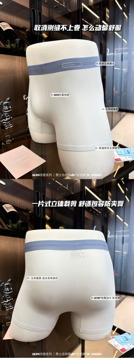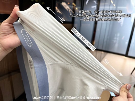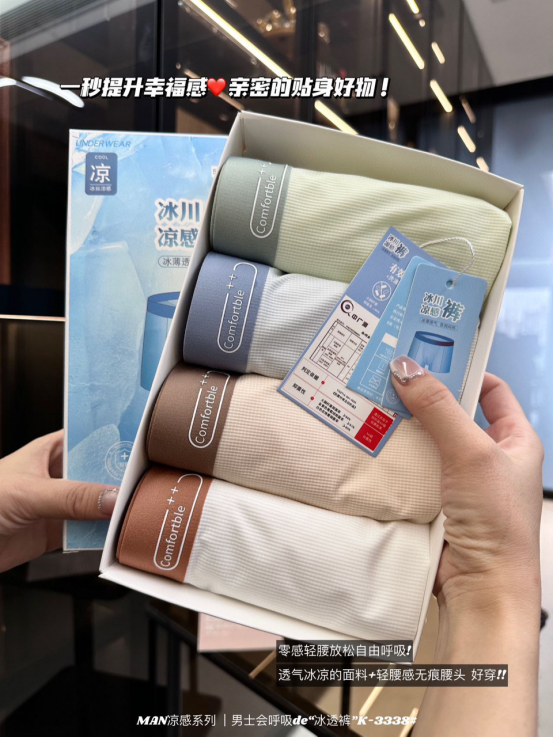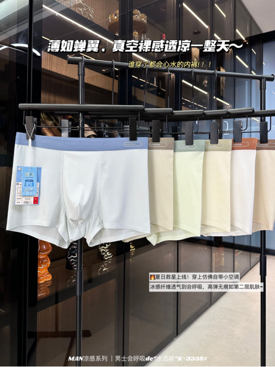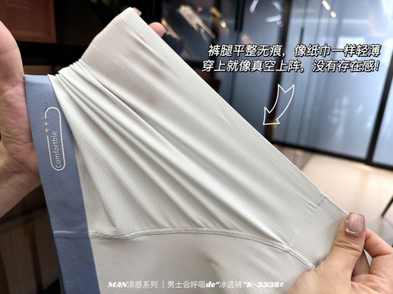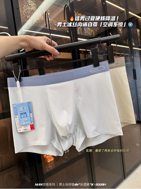 传统棉质闷出尴尬汗渍? 夏天就要换条凉爽的“冰透裤” 3秒降温触感+95%透气率 跑步不卷边、久穿无勒痕 ✅真正会呼吸的“贴身盔甲”!