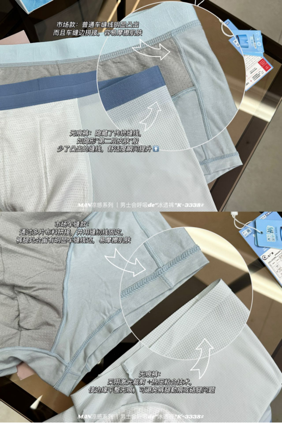 就这样感受一下!你能感受到跟普通内裤的区别吗? “冰透纤维”空气层结构,真的会让你惊叹面料怎么还可以这么好!